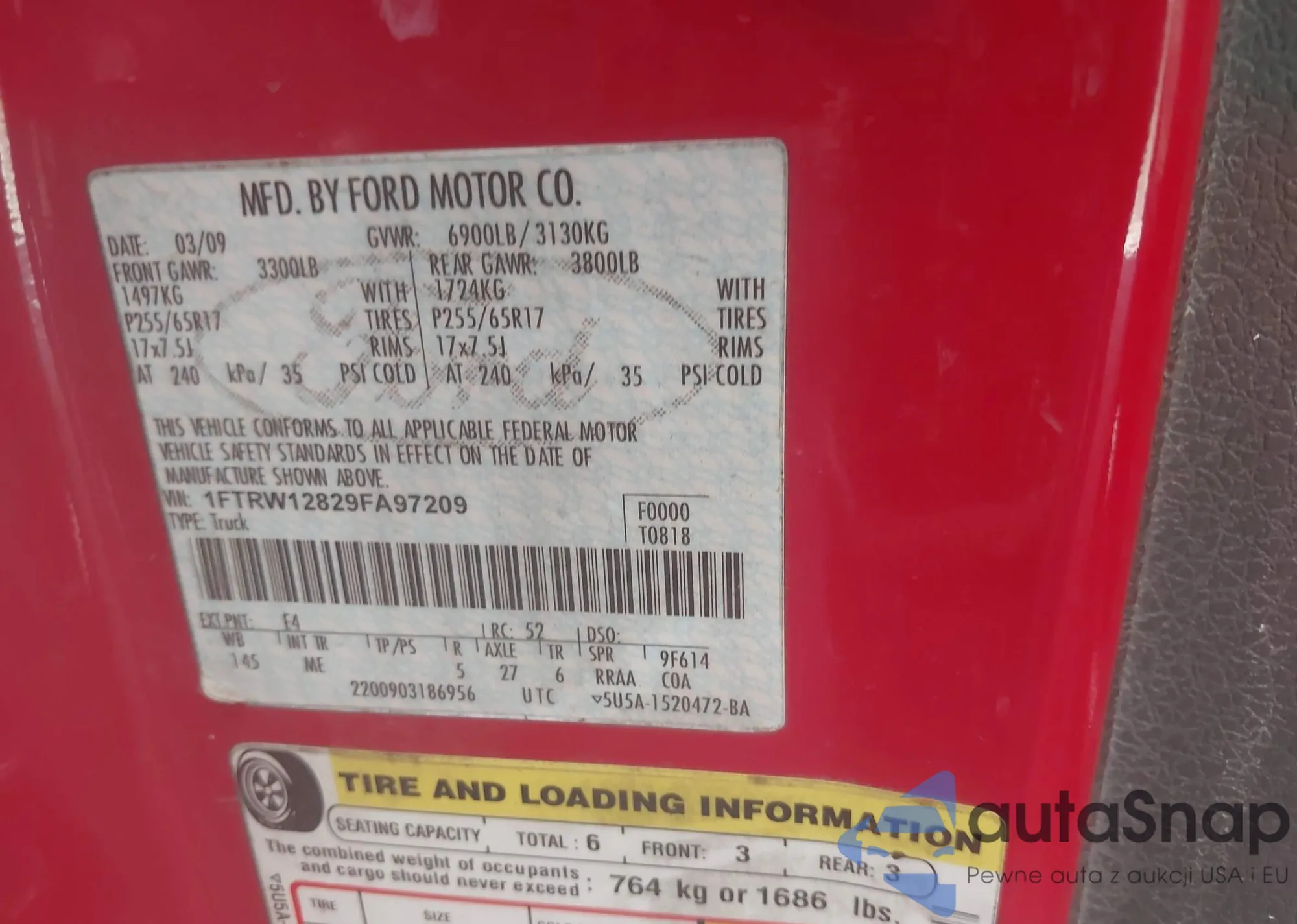 • VIN: 1FTRW12829FA97209