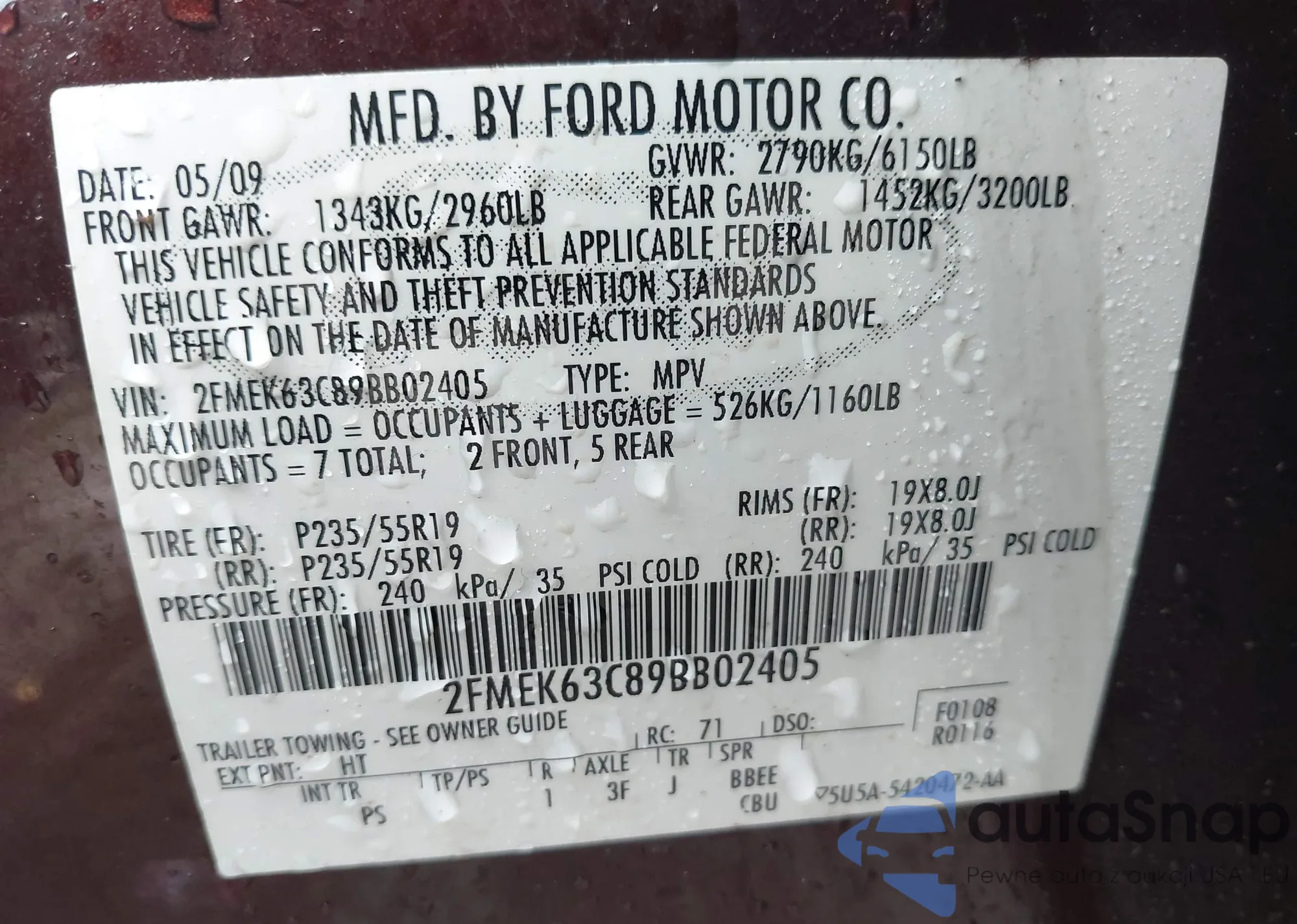 • VIN: 2FMEK63C89BB02405