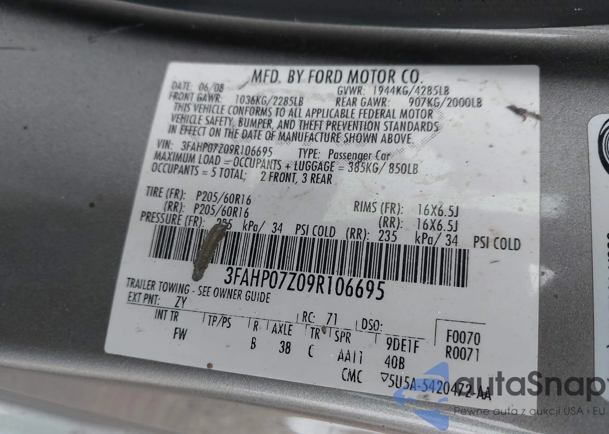 VIN: 3FAHP07Z09R106695