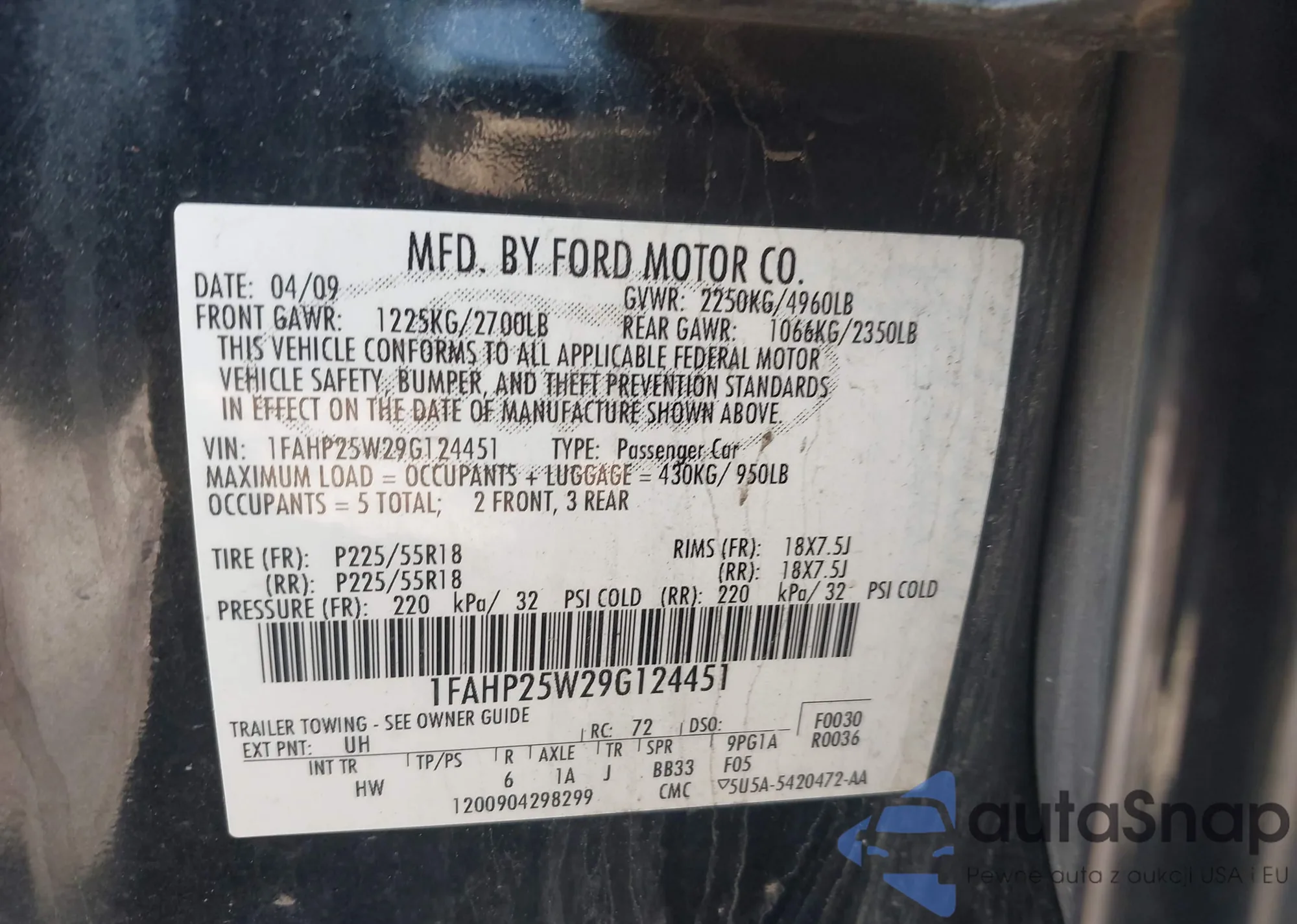 VIN: 1FAHP25W29G124451