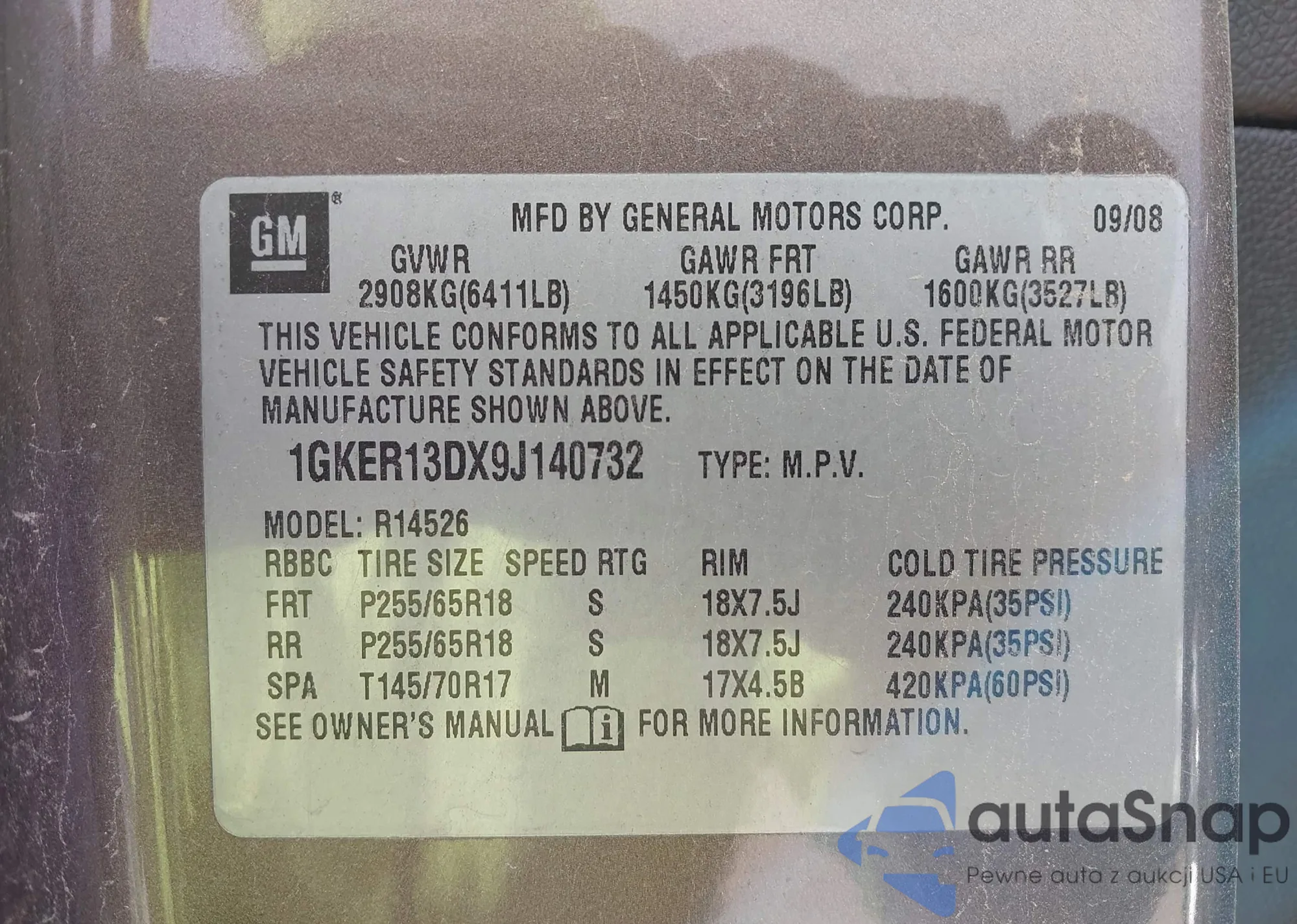 VIN: 1GKER13DX9J140732