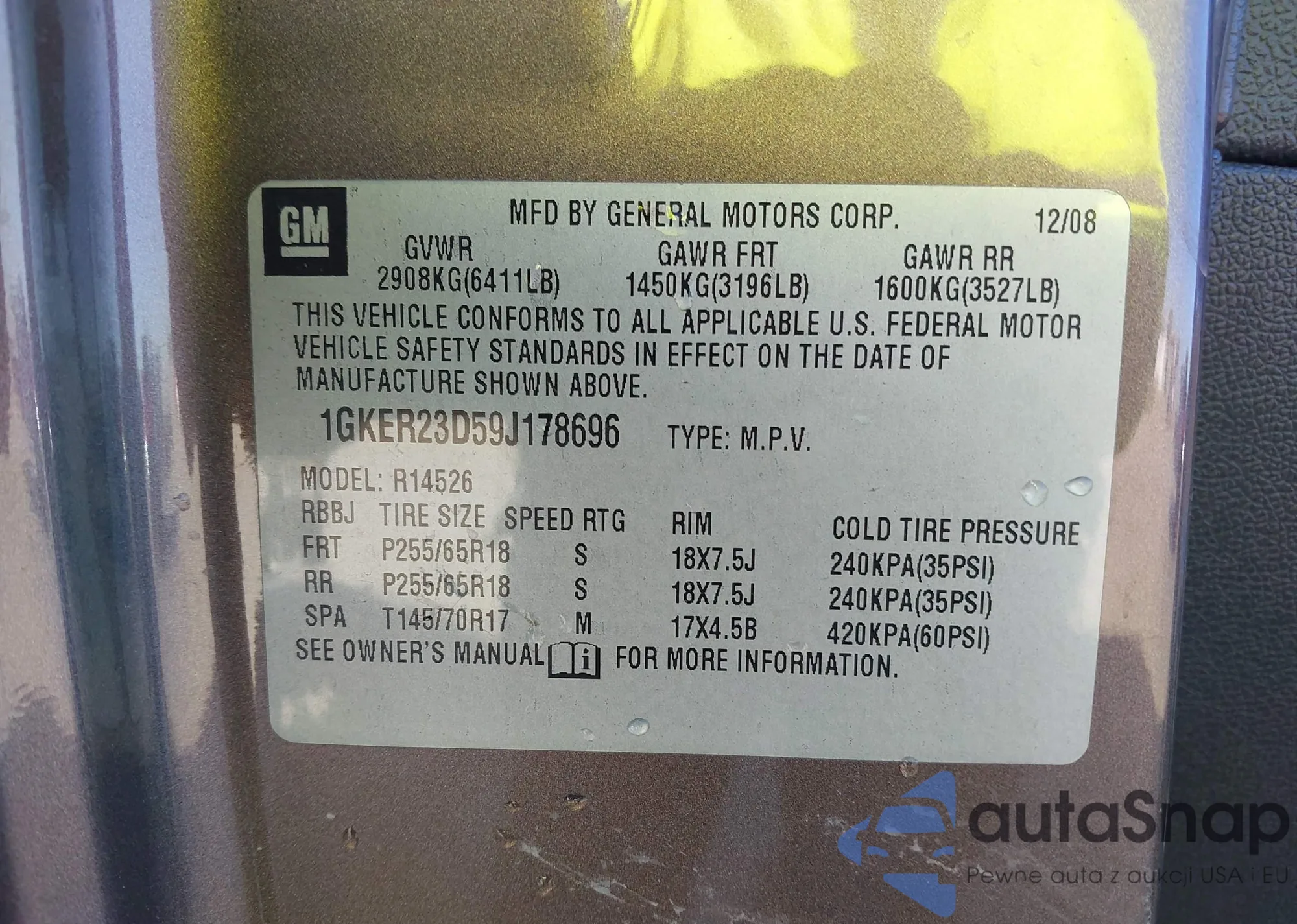 Автомобиль GMC Acadia 2009 (VIN 1GKER23D59J178696) ранее не участвовал в торгах. Документы чистые, пробег соответствует или ниже среднего по рынку. Продаётся страховой компанией — рекомендуем покупку. Доставка в порт займет около 6–8 недель.