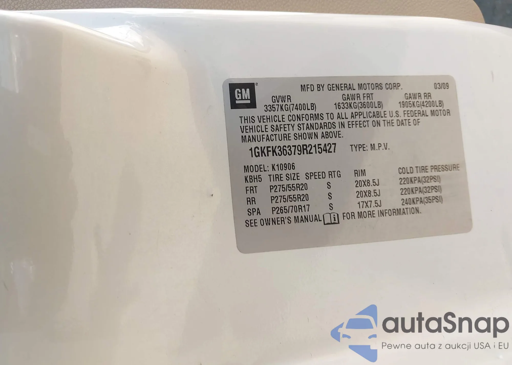 VIN: 1GKFK36379R215427