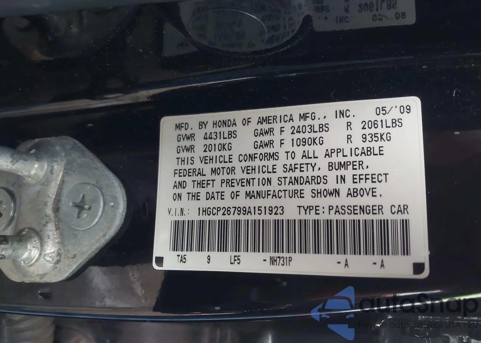 VIN: 1HGCP26799A151923