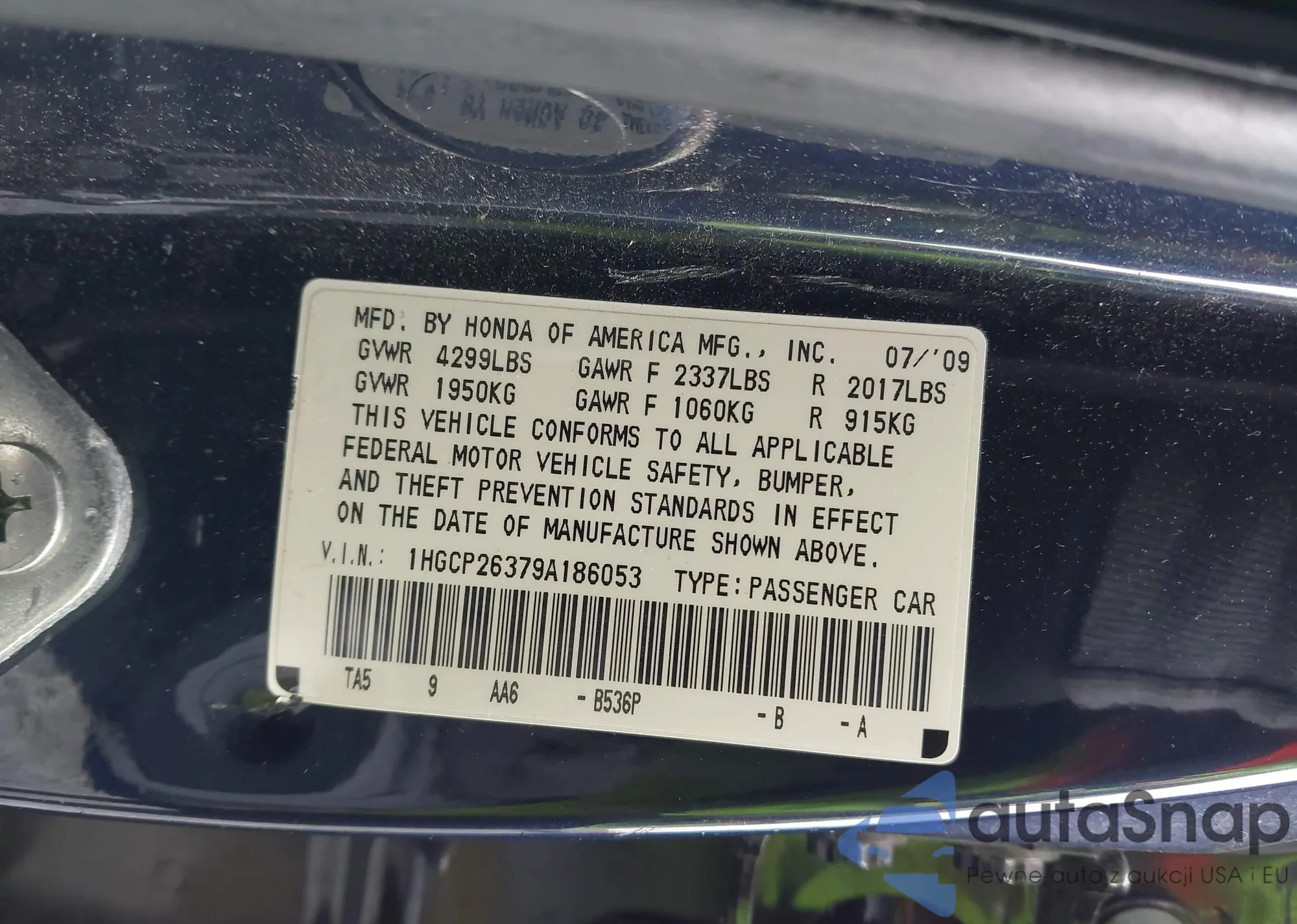 VIN: 1HGCP26379A186053