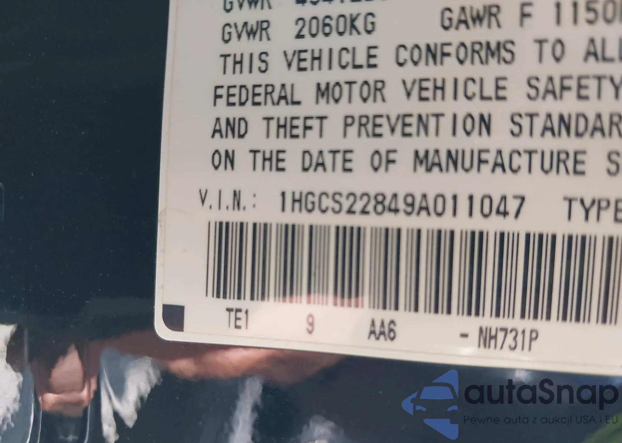 • VIN: 1HGCS22849A011047