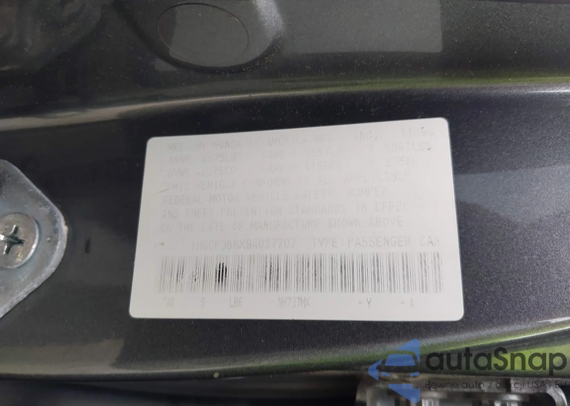 VIN: 1HGCP368X9A027707