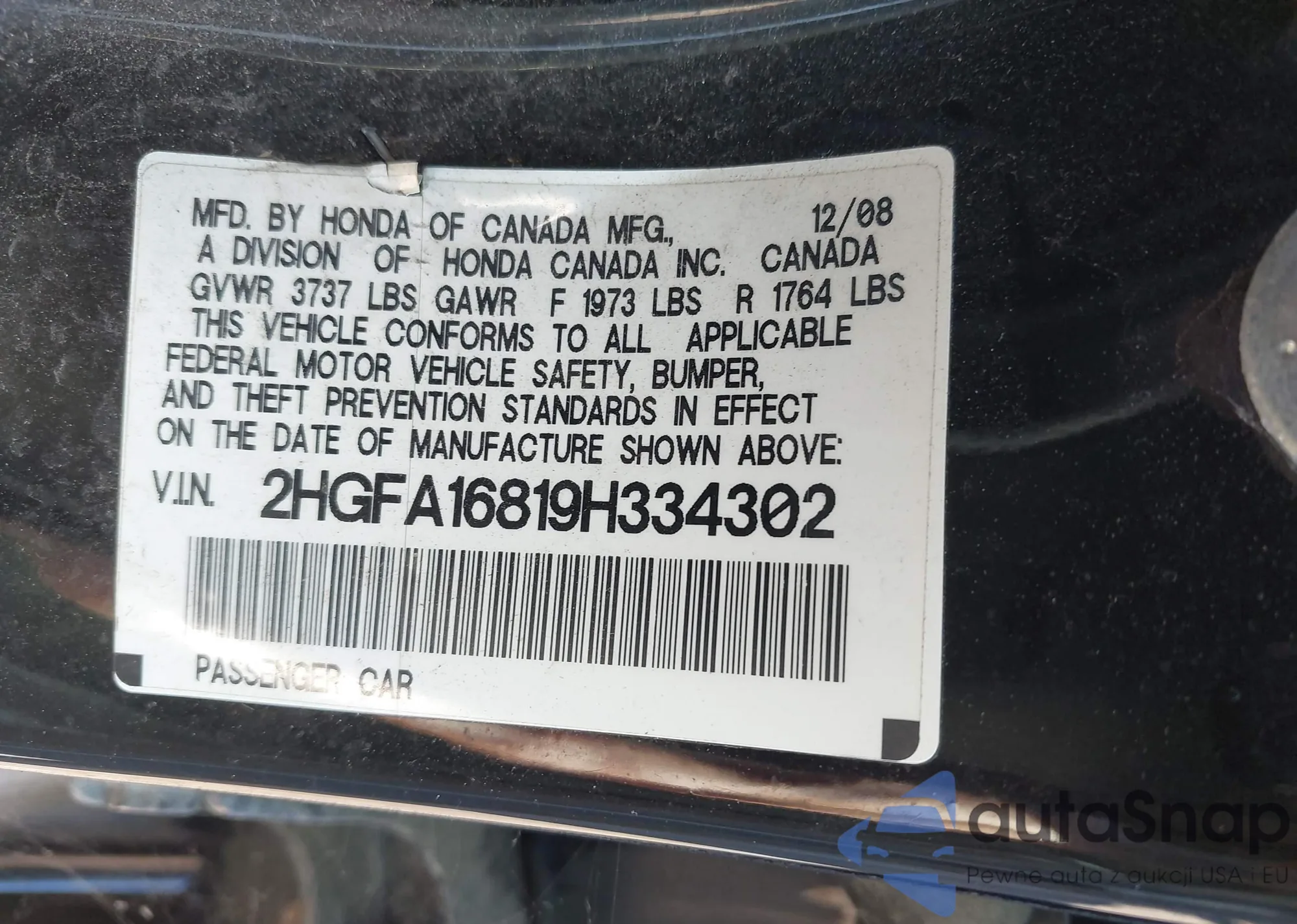 VIN: 2HGFA16819H334302