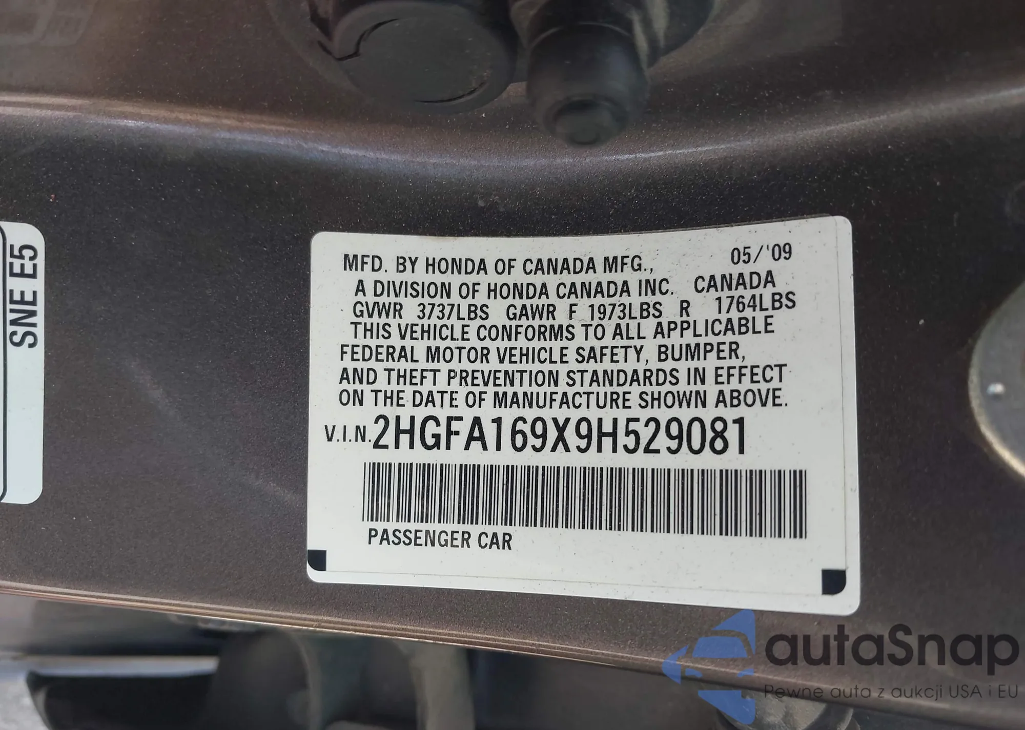 • VIN: 2HGFA169X9H529081