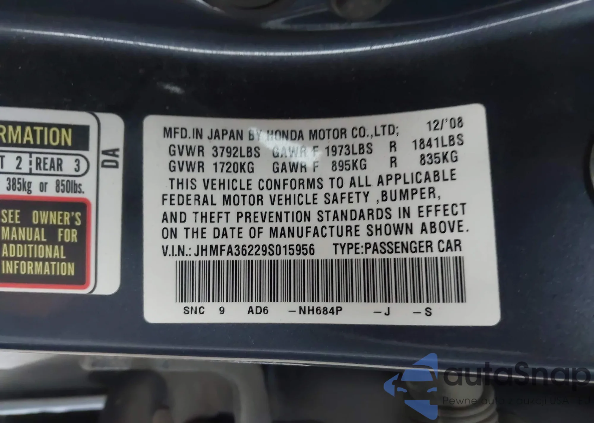 VIN: JHMFA36229S015956
