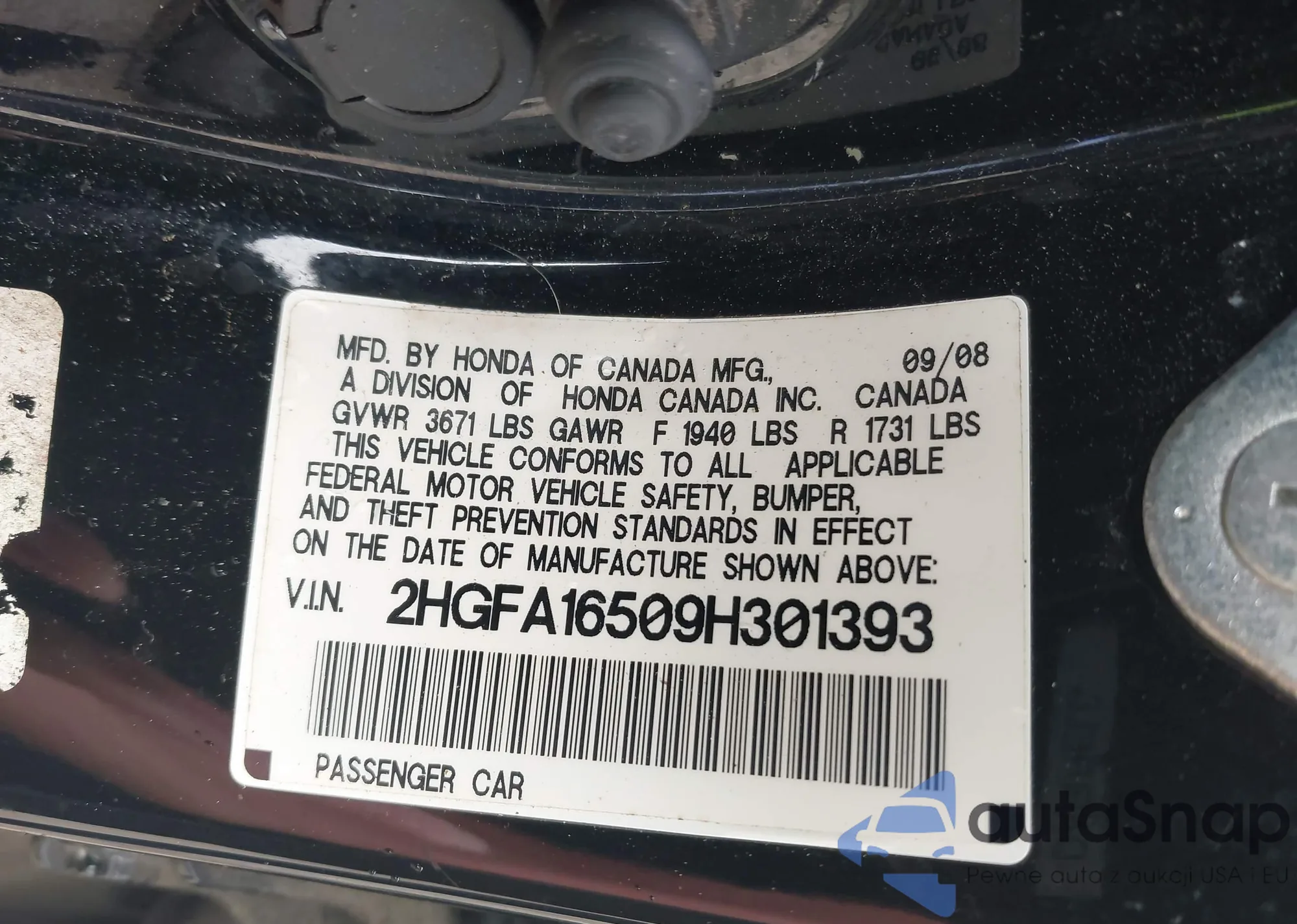VIN: 2HGFA16509H301393