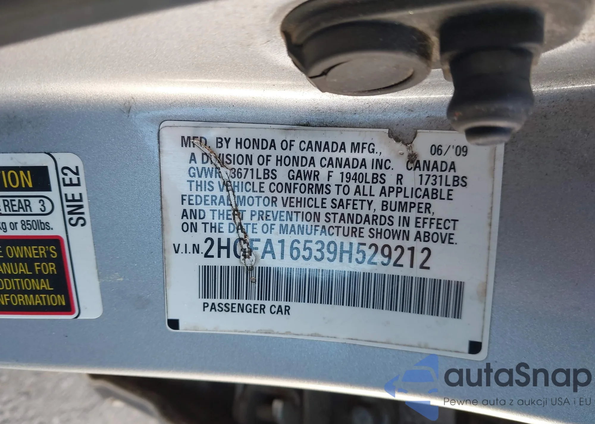 VIN: 2HGFA16539H529212