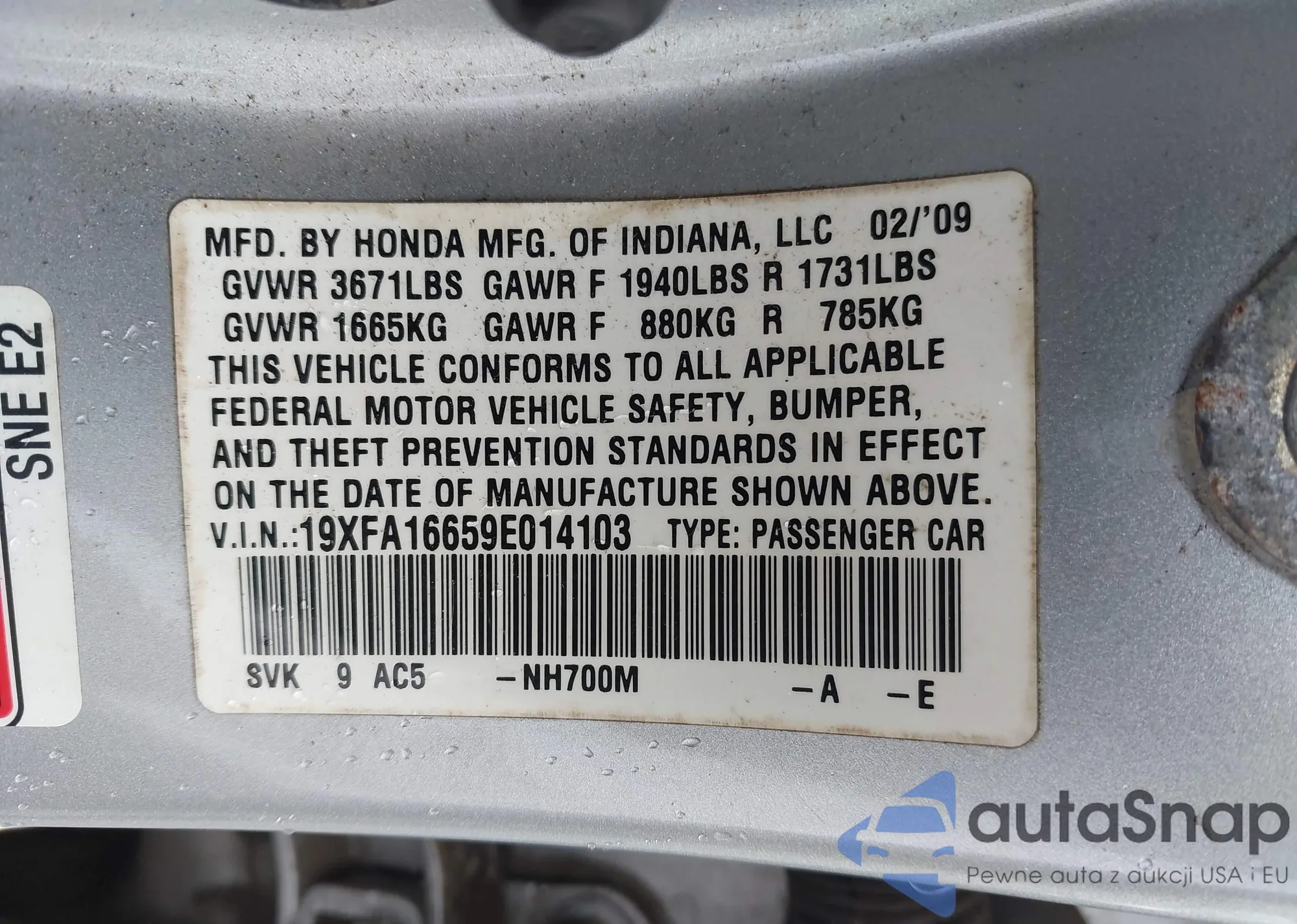 VIN: 19XFA16659E014103