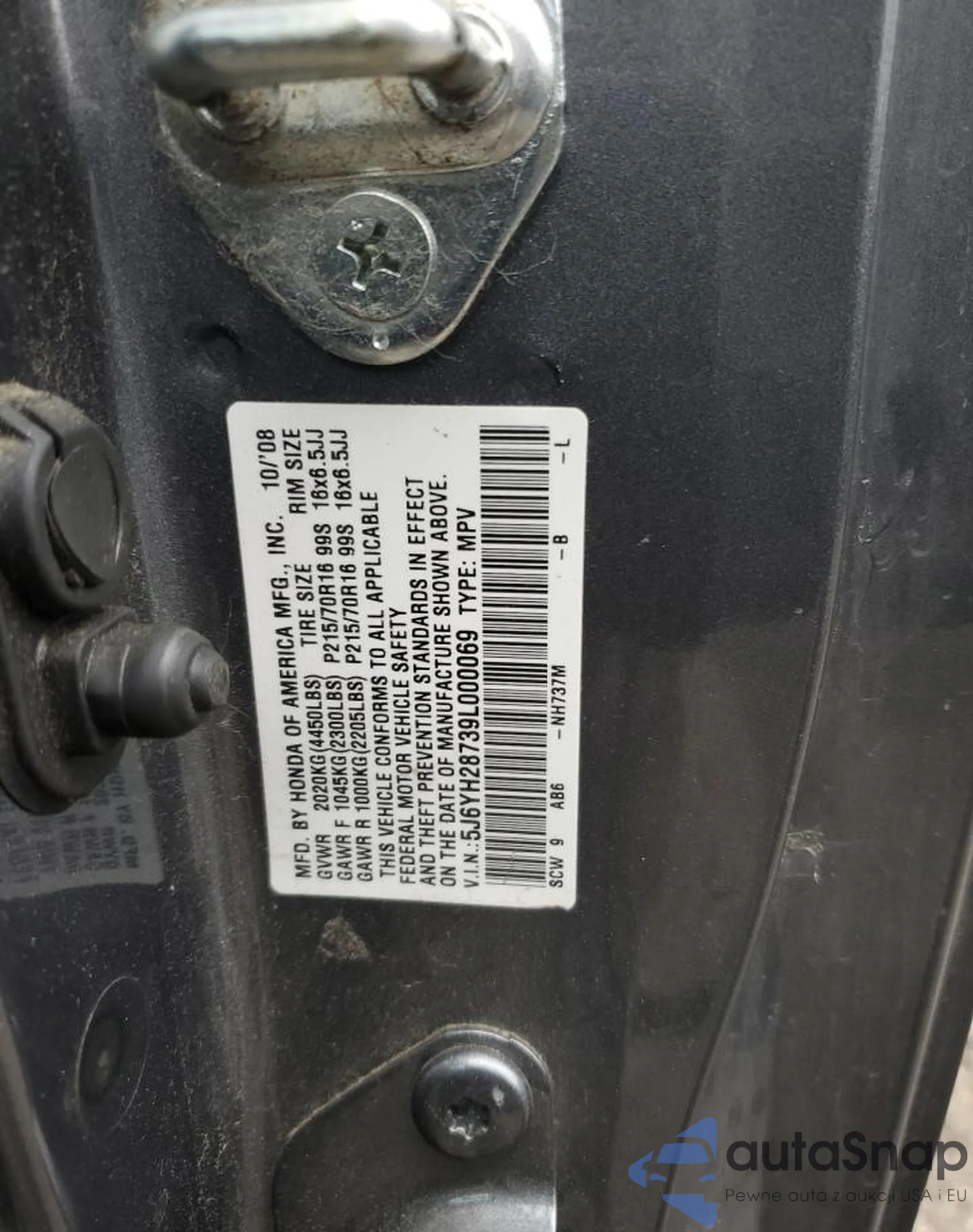 VIN: 5J6YH28739L000069