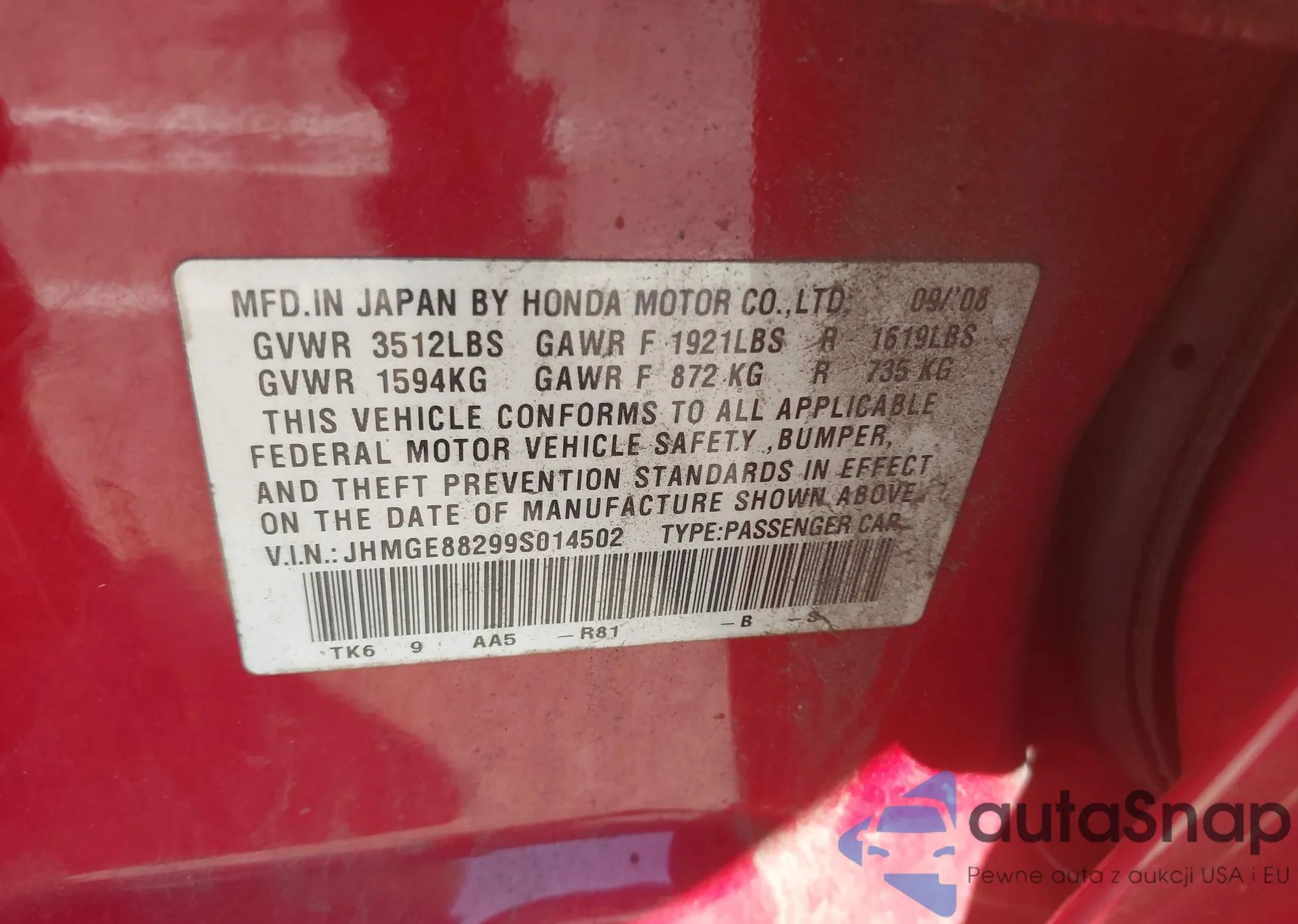 VIN: JHMGE88299S014502