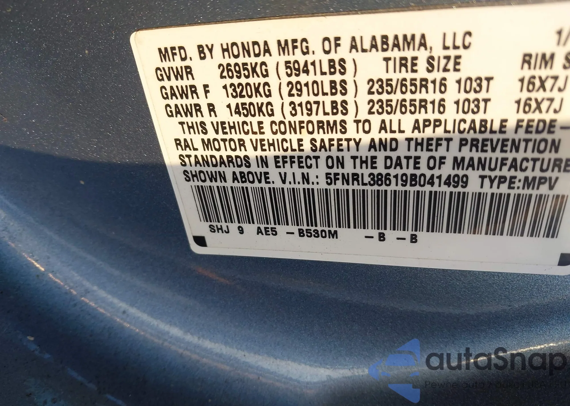 VIN: 5FNRL38619B041499