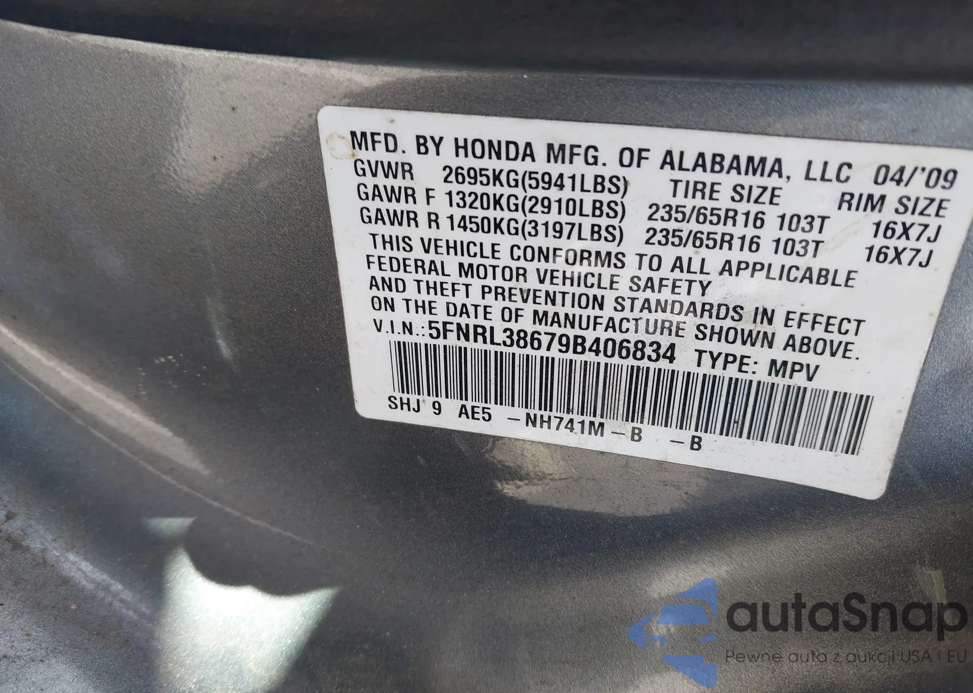 VIN: 5FNRL38679B406834