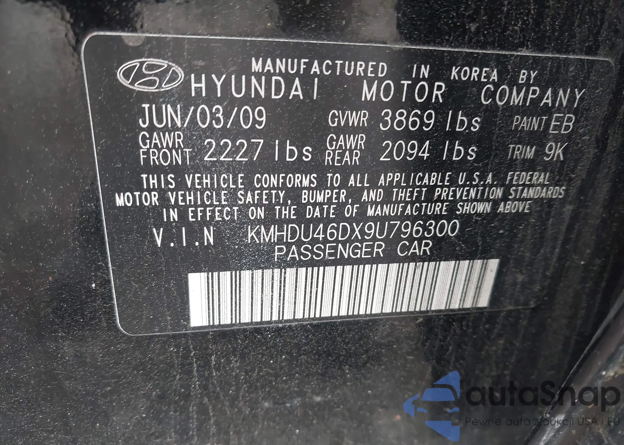 VIN: KMHDU46DX9U796300