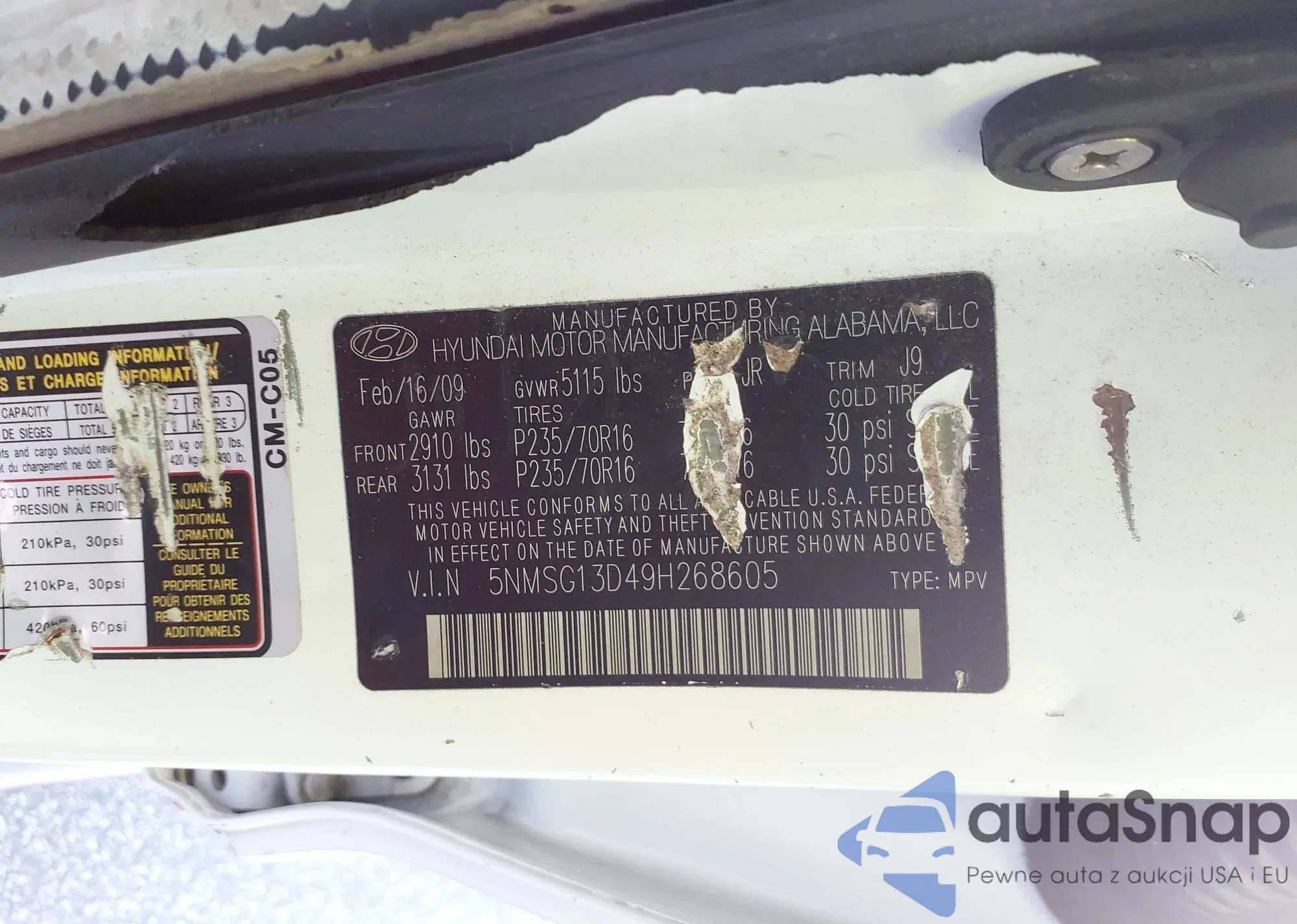 VIN: 5NMSG13D49H268605