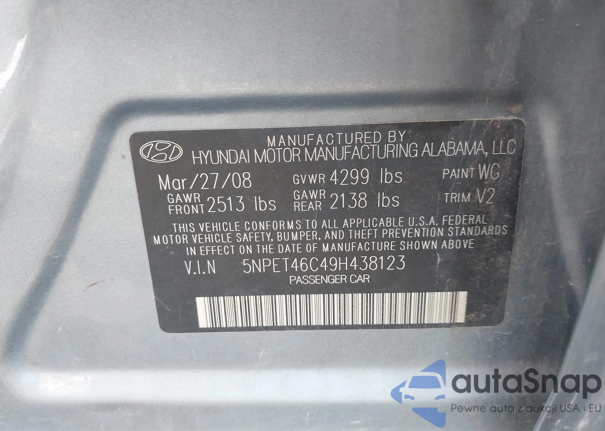 VIN: 5NPET46C49H438123