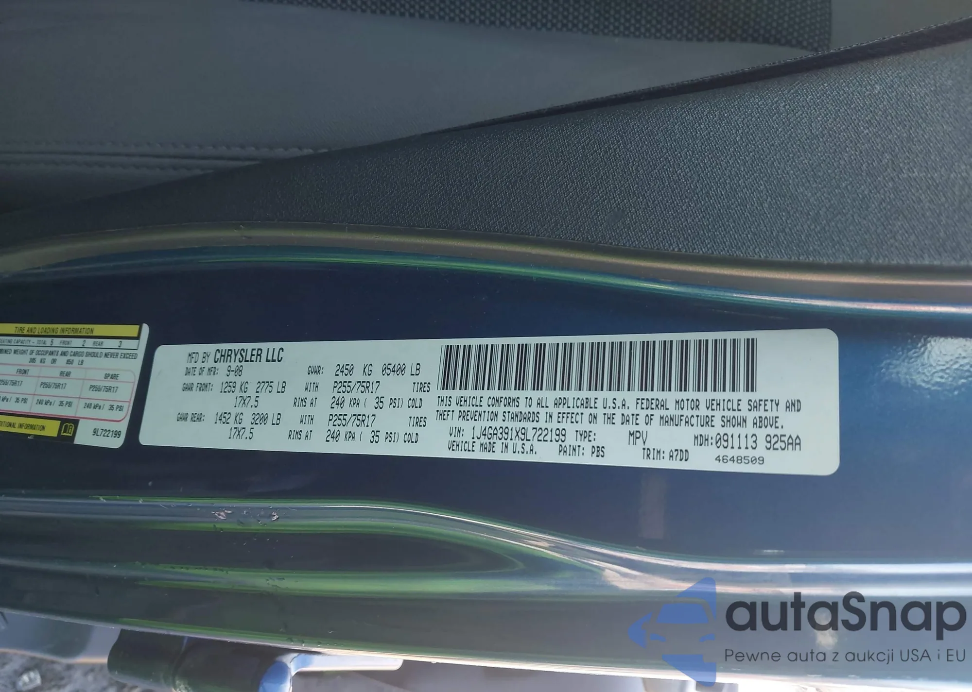 VIN: 1J4GA391X9L722199