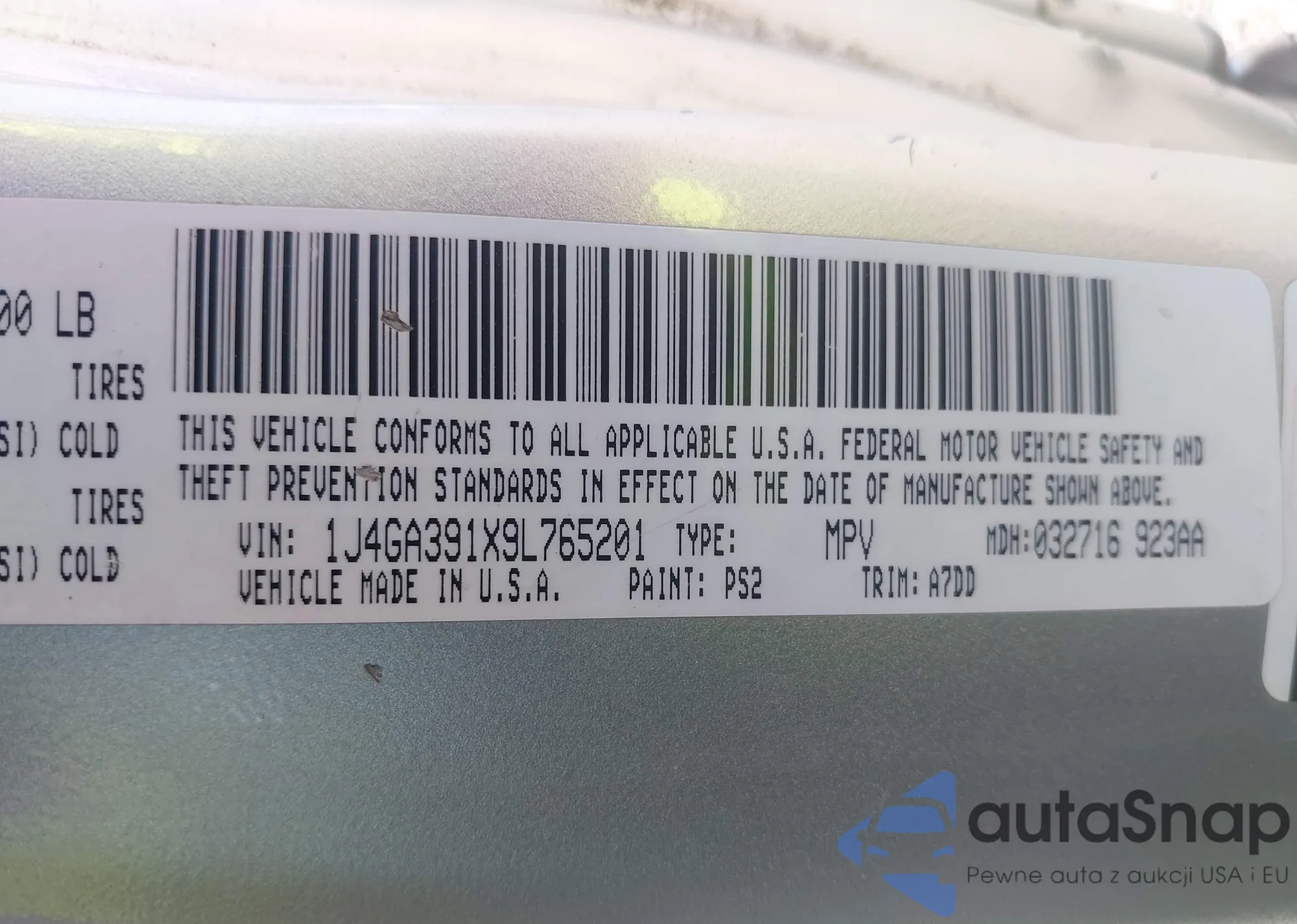 VIN: 1J4GA391X9L765201