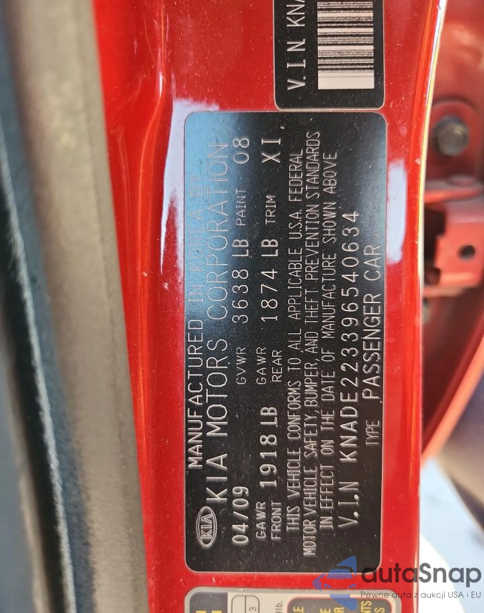 VIN: KNADE223396540634