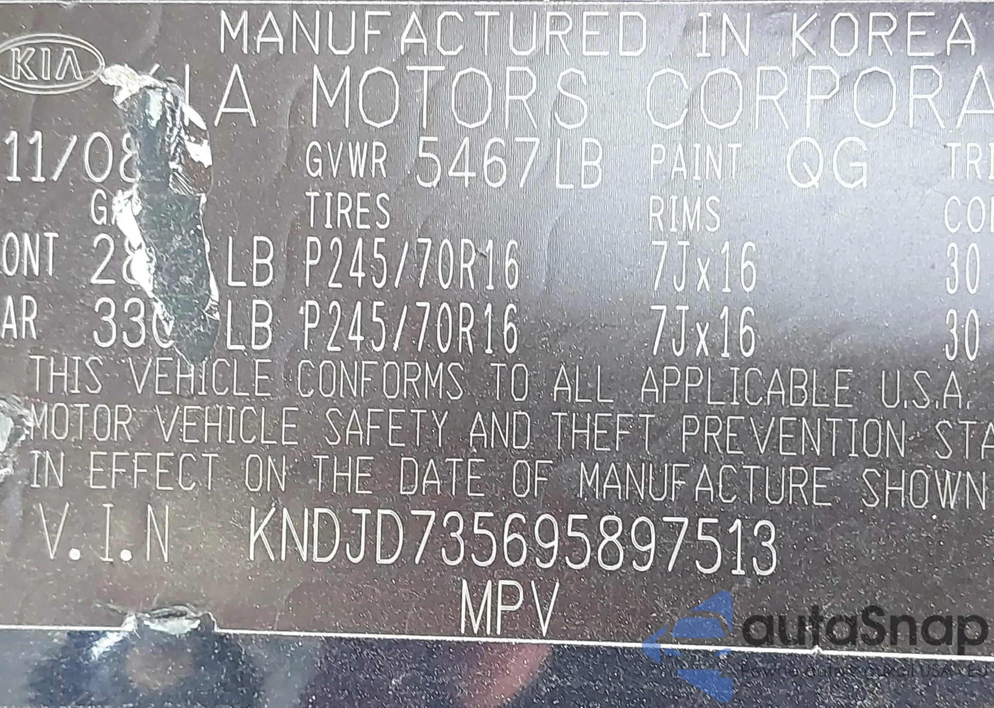 VIN: KNDJD735695897513