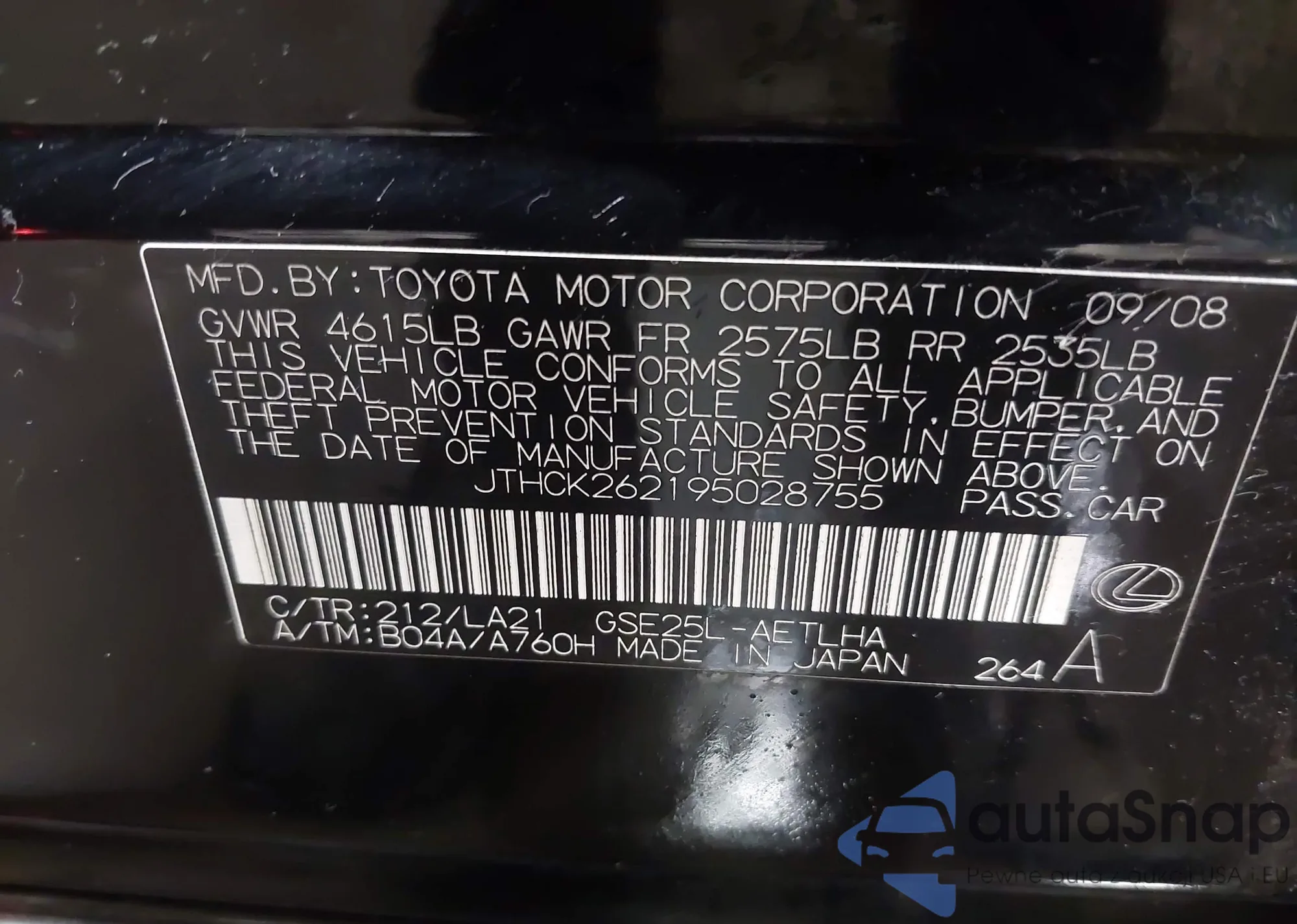 VIN: JTHCK262195028755