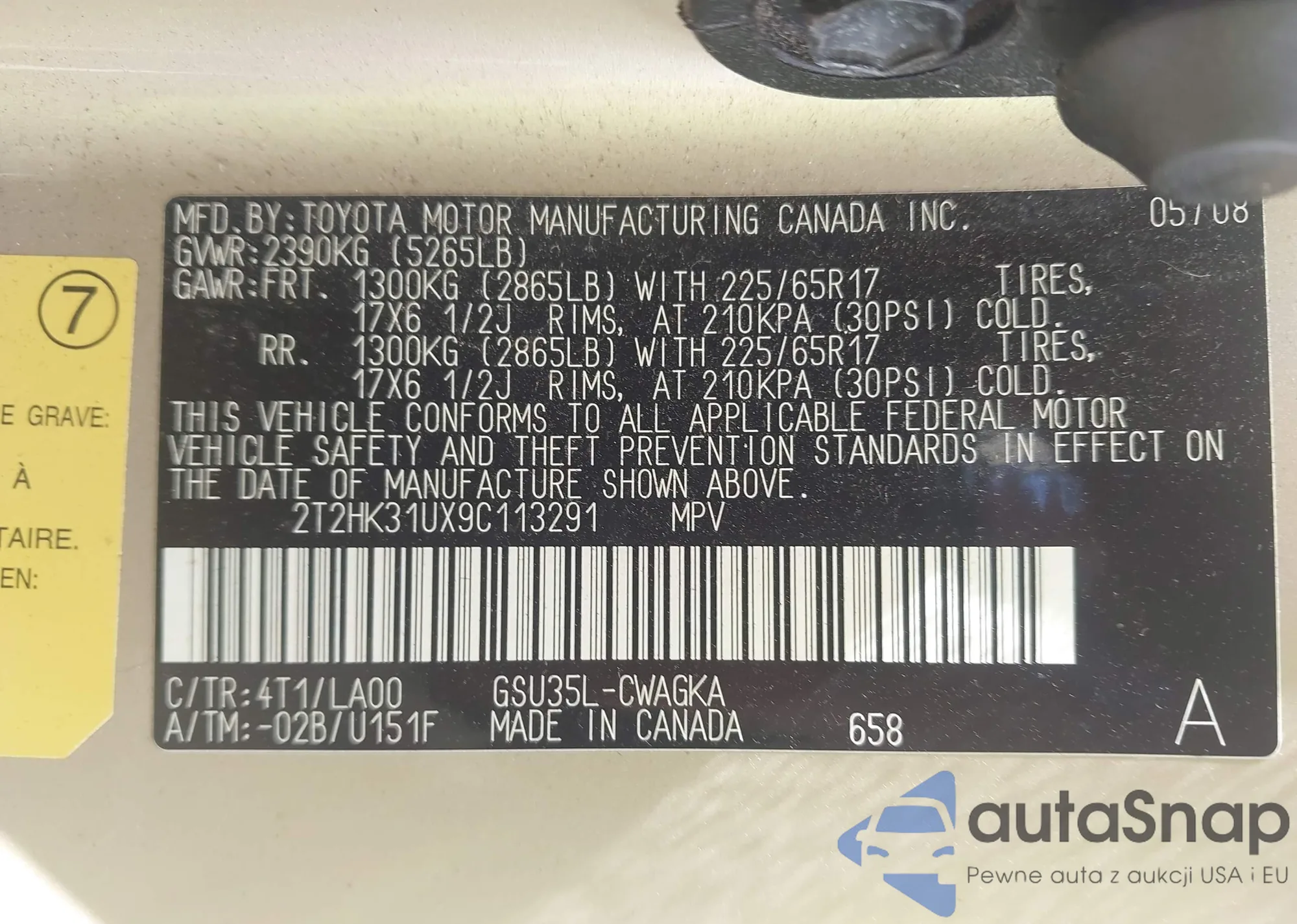 VIN: 2T2HK31UX9C113291