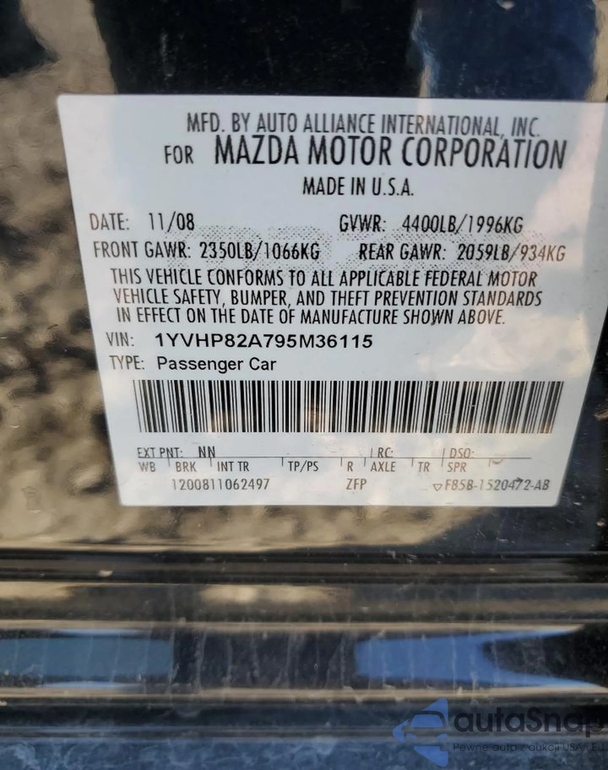 VIN: 1YVHP82A795M36115