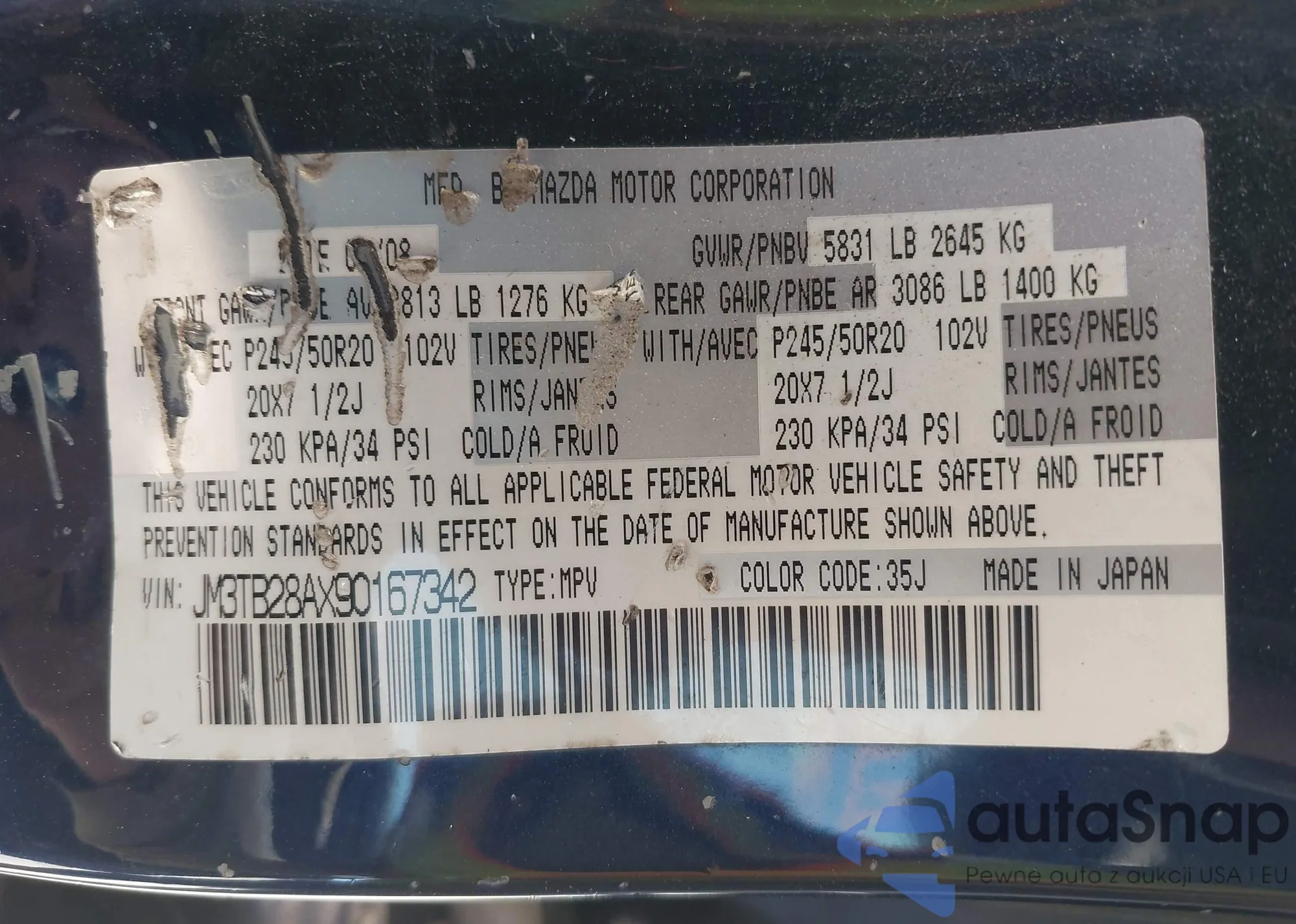VIN: JM3TB28AX90167342