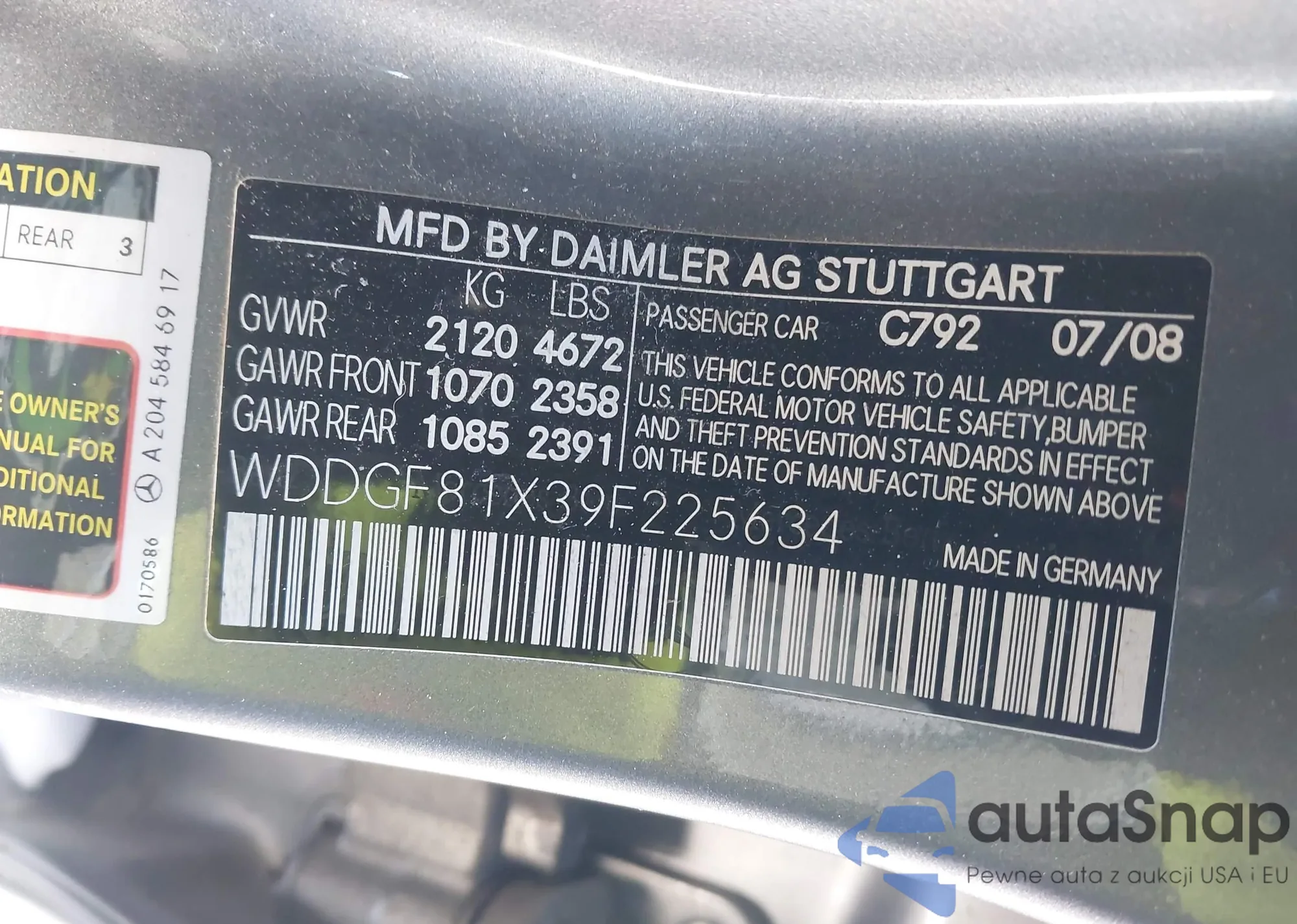 • VIN: WDDGF81X39F225634