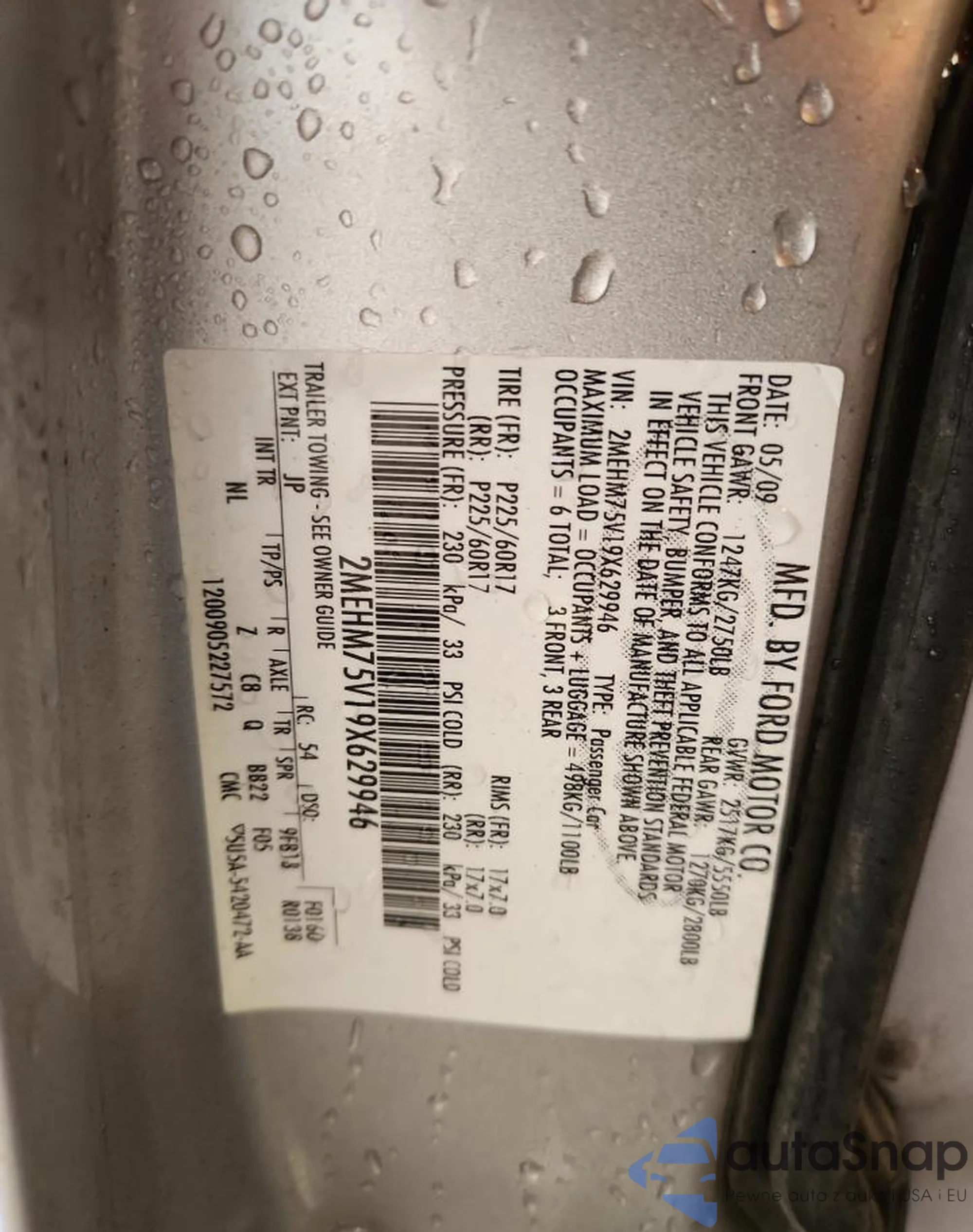 Автомобиль Mercury Grand Marquis 2009 (VIN 2MEHM75V19X629946) имеет документы, препятствующие регистрации. Могут возникнуть сложности при экспорте и регистрации. Обратитесь к экспертам AutaSnap для поиска альтернатив.