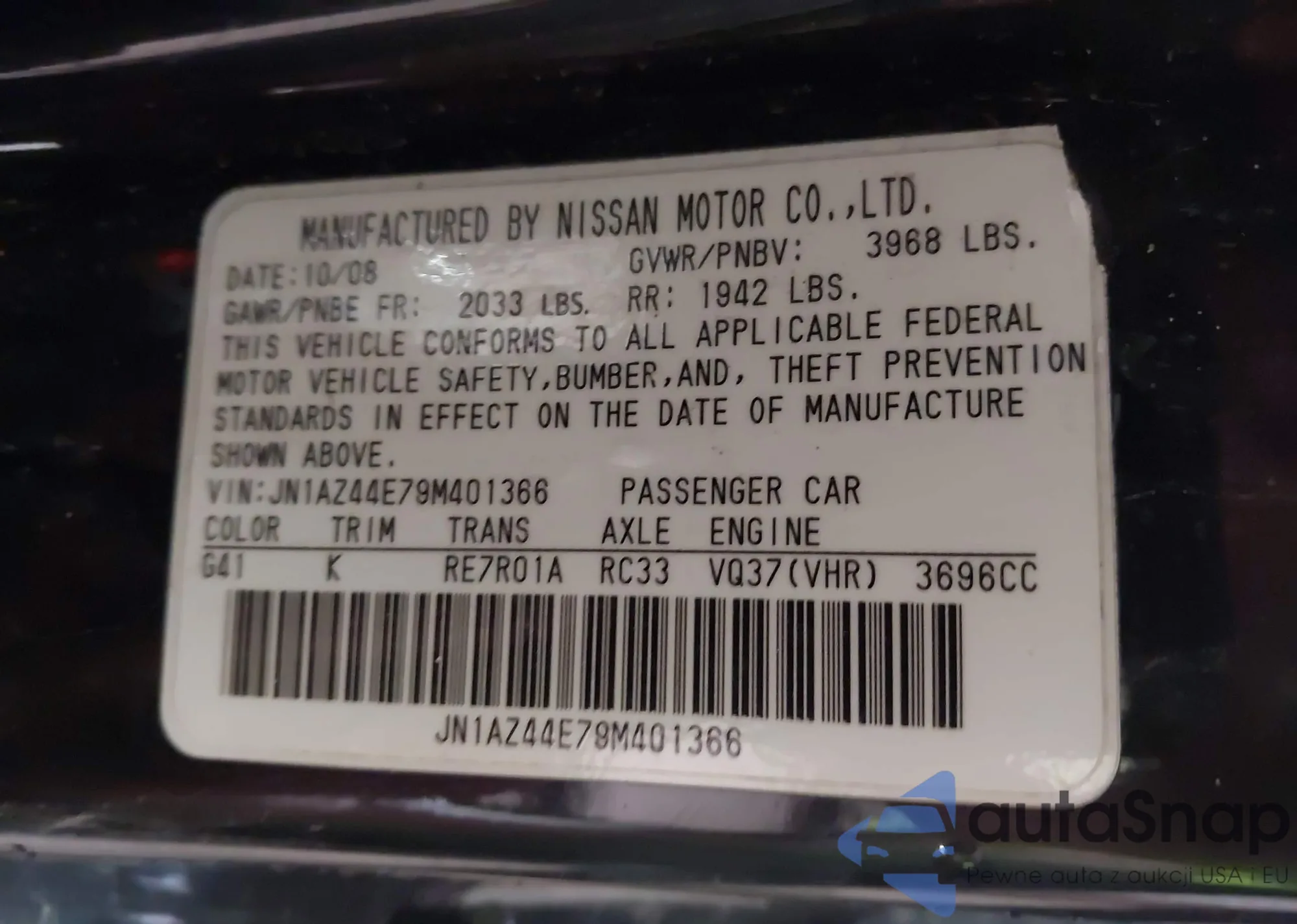 Автомобиль Nissan 370Z 2009 (VIN JN1AZ44E79M401366) уже участвовал в торгах 1 раз(а) и/или продаётся непроверенным продавцом. Рекомендуем проверить отчет Carfax и подтвердить возможность регистрации перед покупкой.