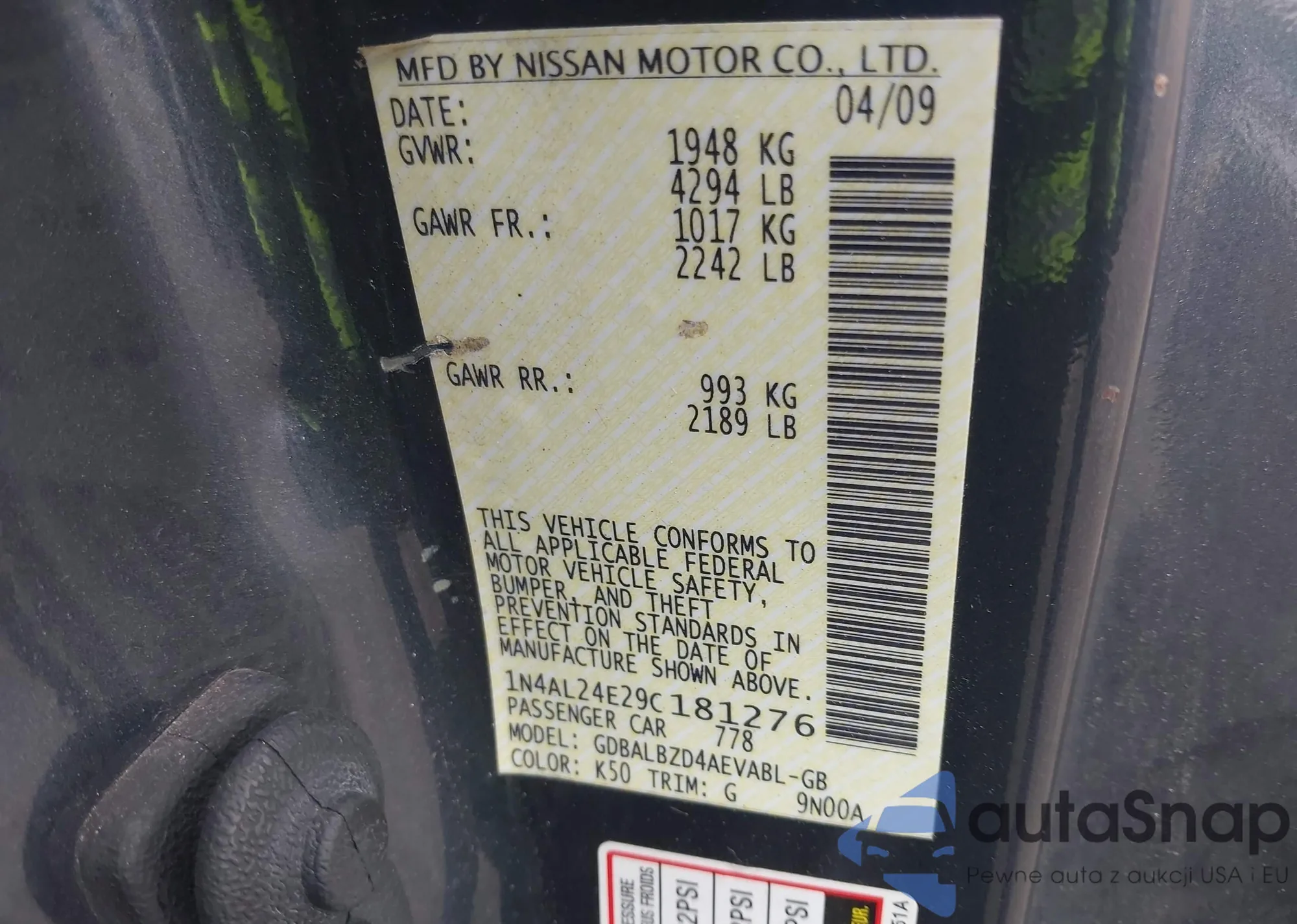 VIN: 1N4AL24E29C181276