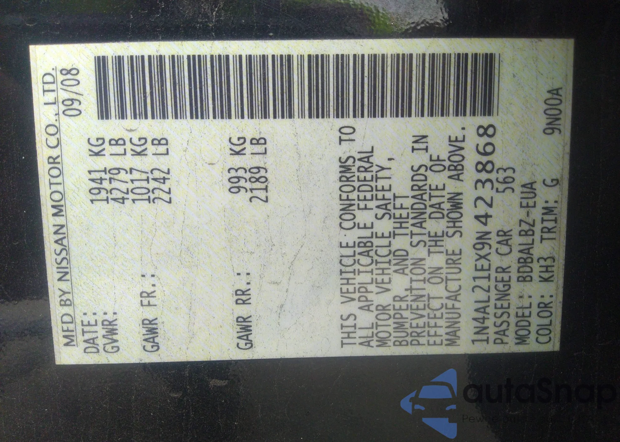 VIN: 1N4AL21EX9N423868