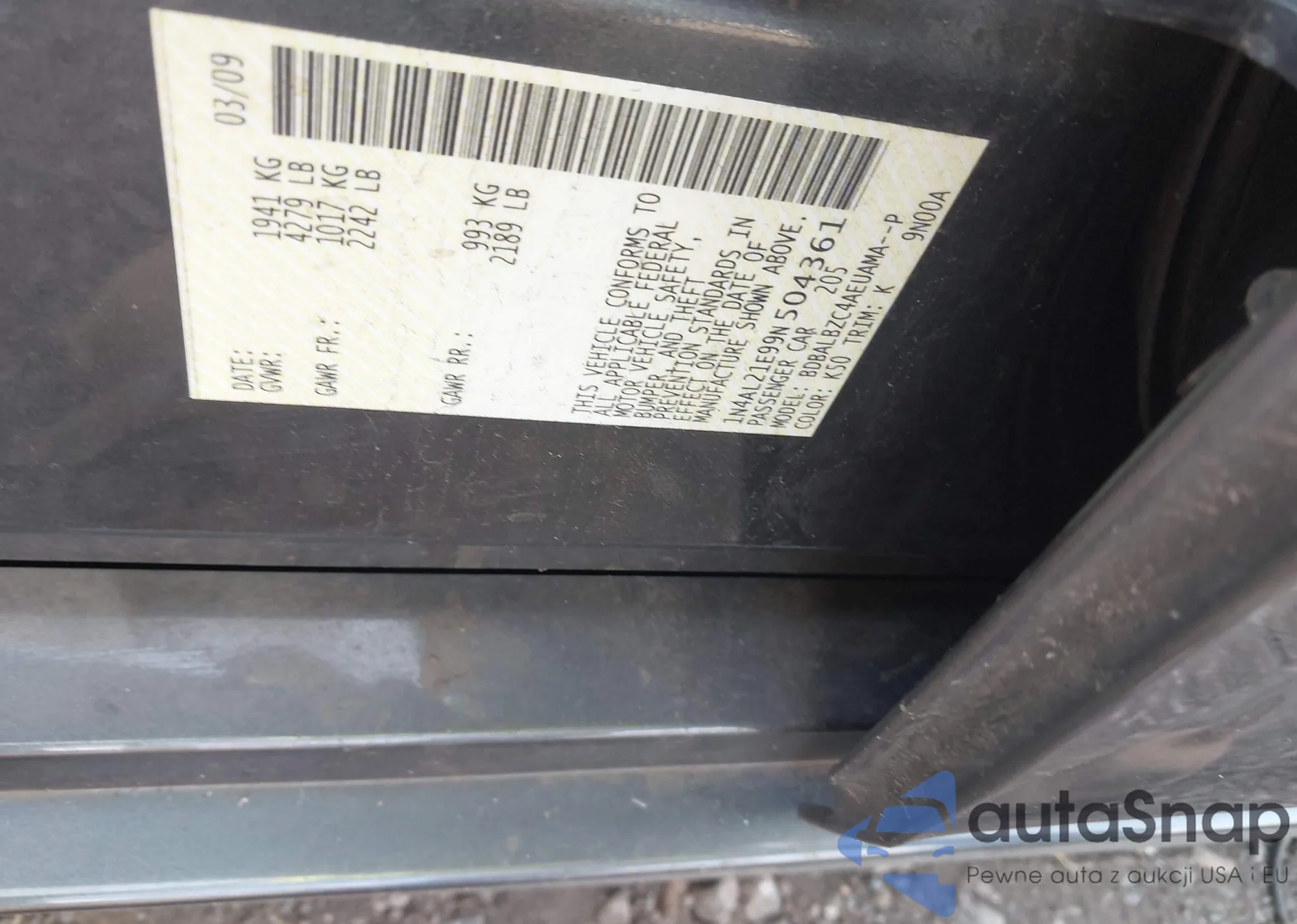 • VIN: 1N4AL21E99N504361
