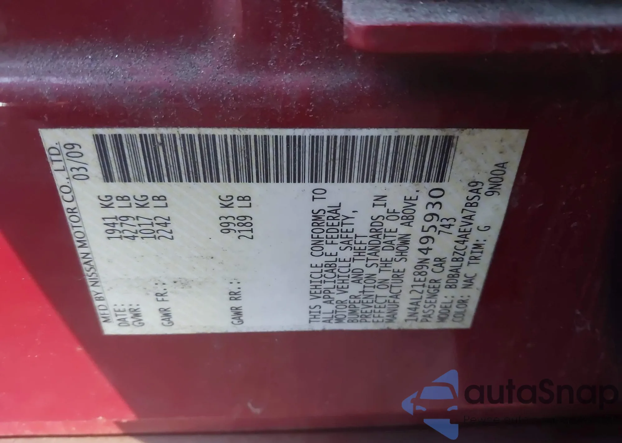Автомобиль Nissan Altima 2009 (VIN 1N4AL21E89N495930) ранее не участвовал в торгах. Документы чистые, пробег соответствует или ниже среднего по рынку. Продаётся страховой компанией — рекомендуем покупку. Доставка в порт займет около 6–8 недель.