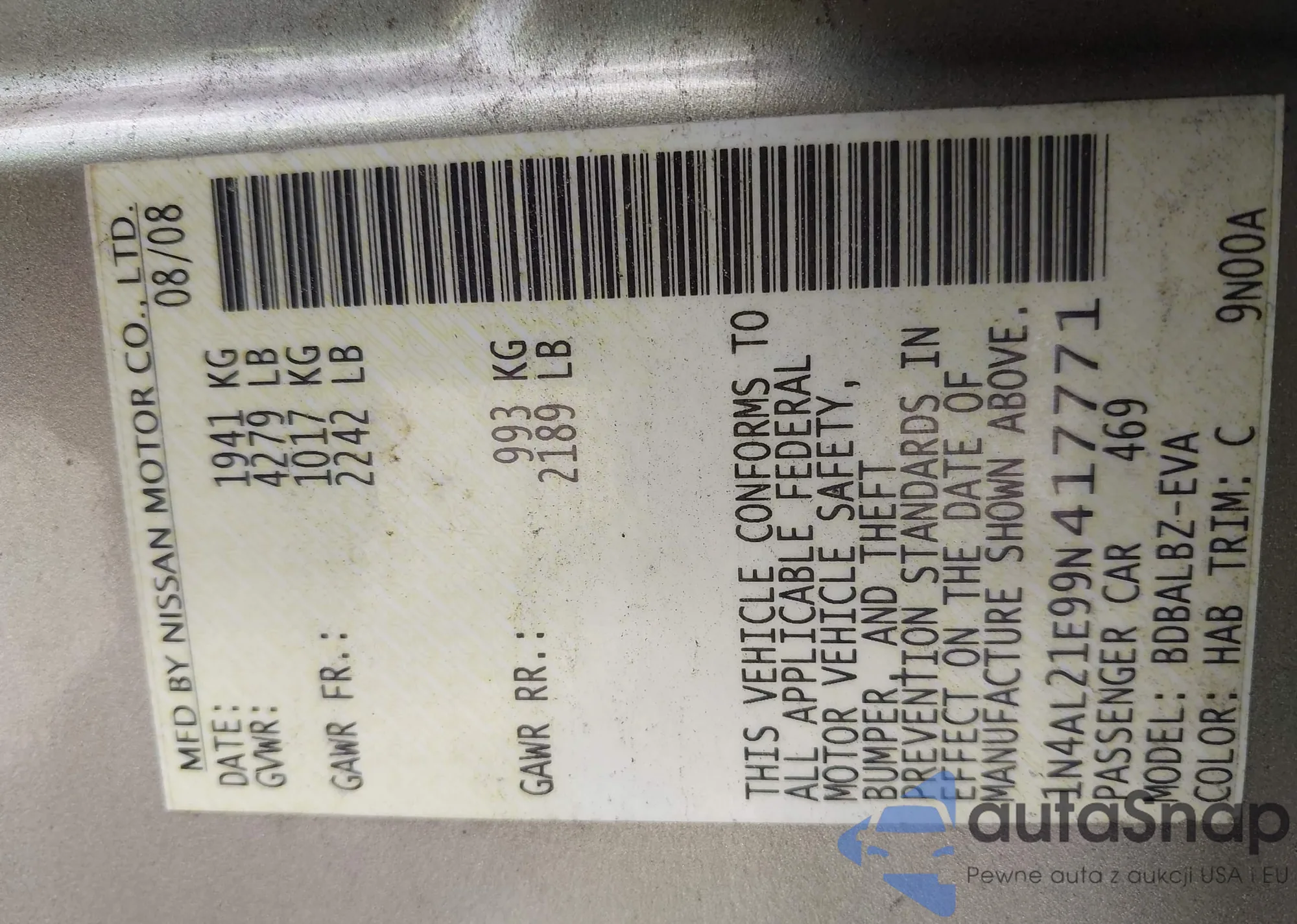 • VIN: 1N4AL21E99N417771