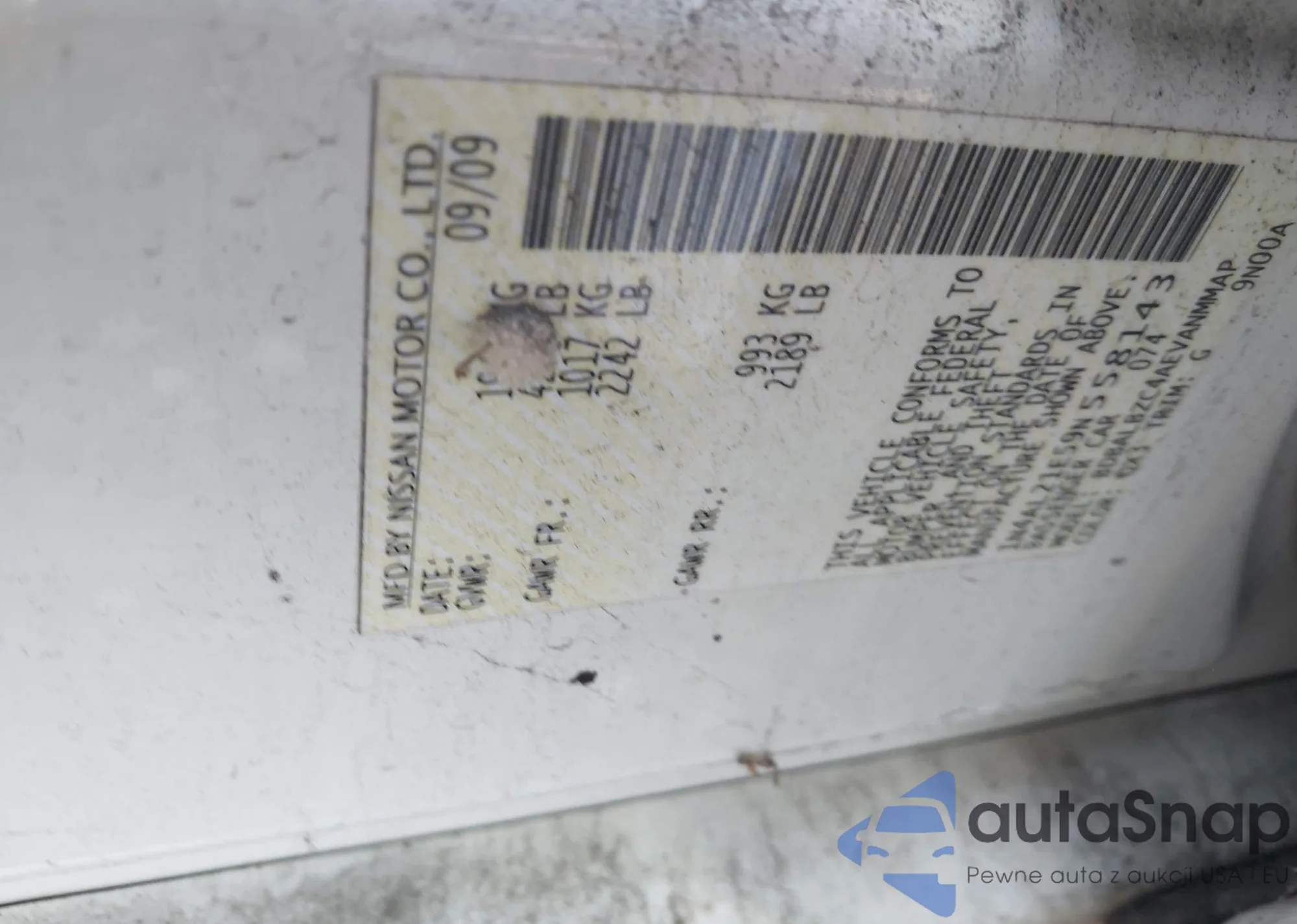 Nissan Altima 2009 – История автомобиля (продан на IAAI)