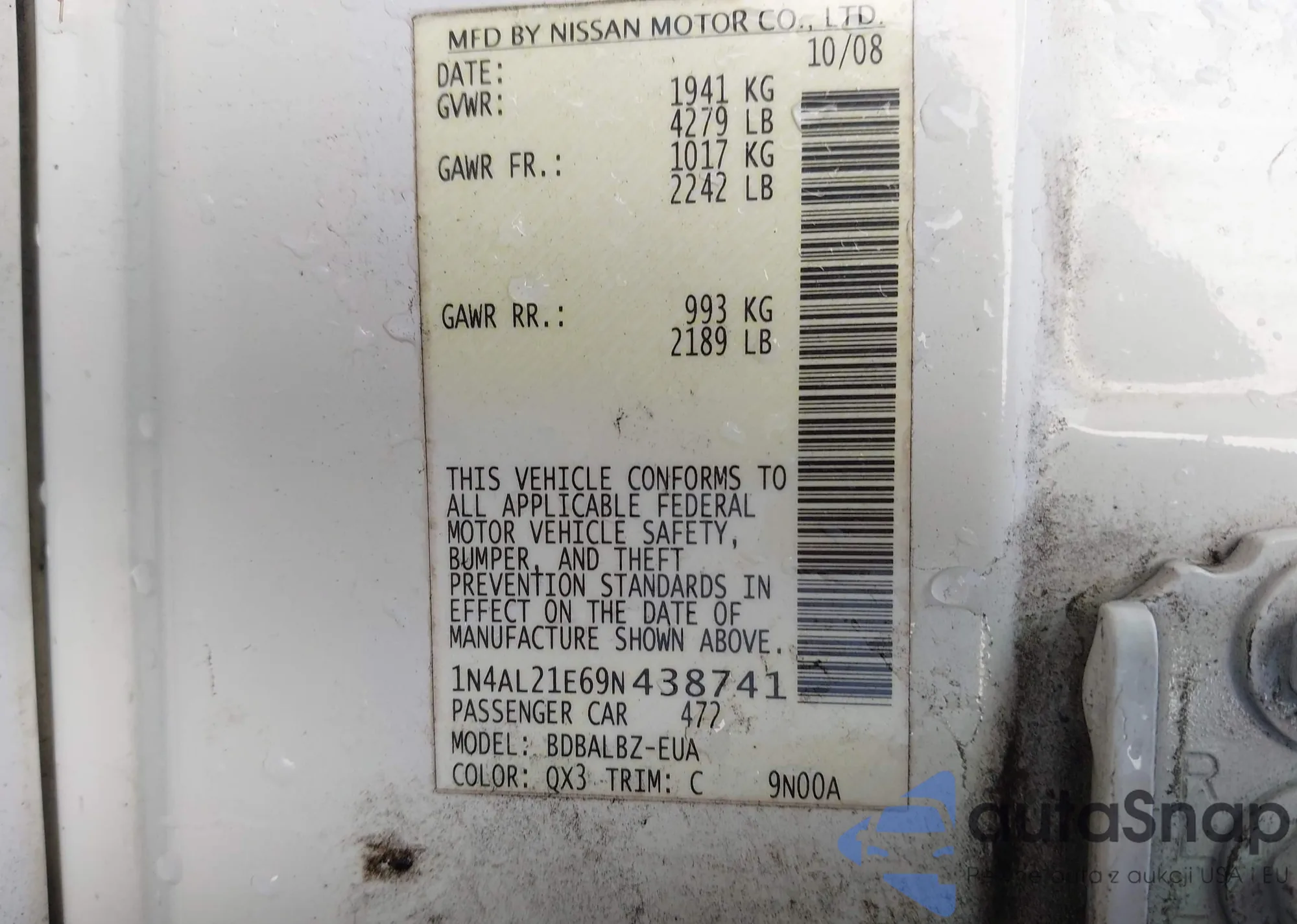 • VIN: 1N4AL21E69N438741