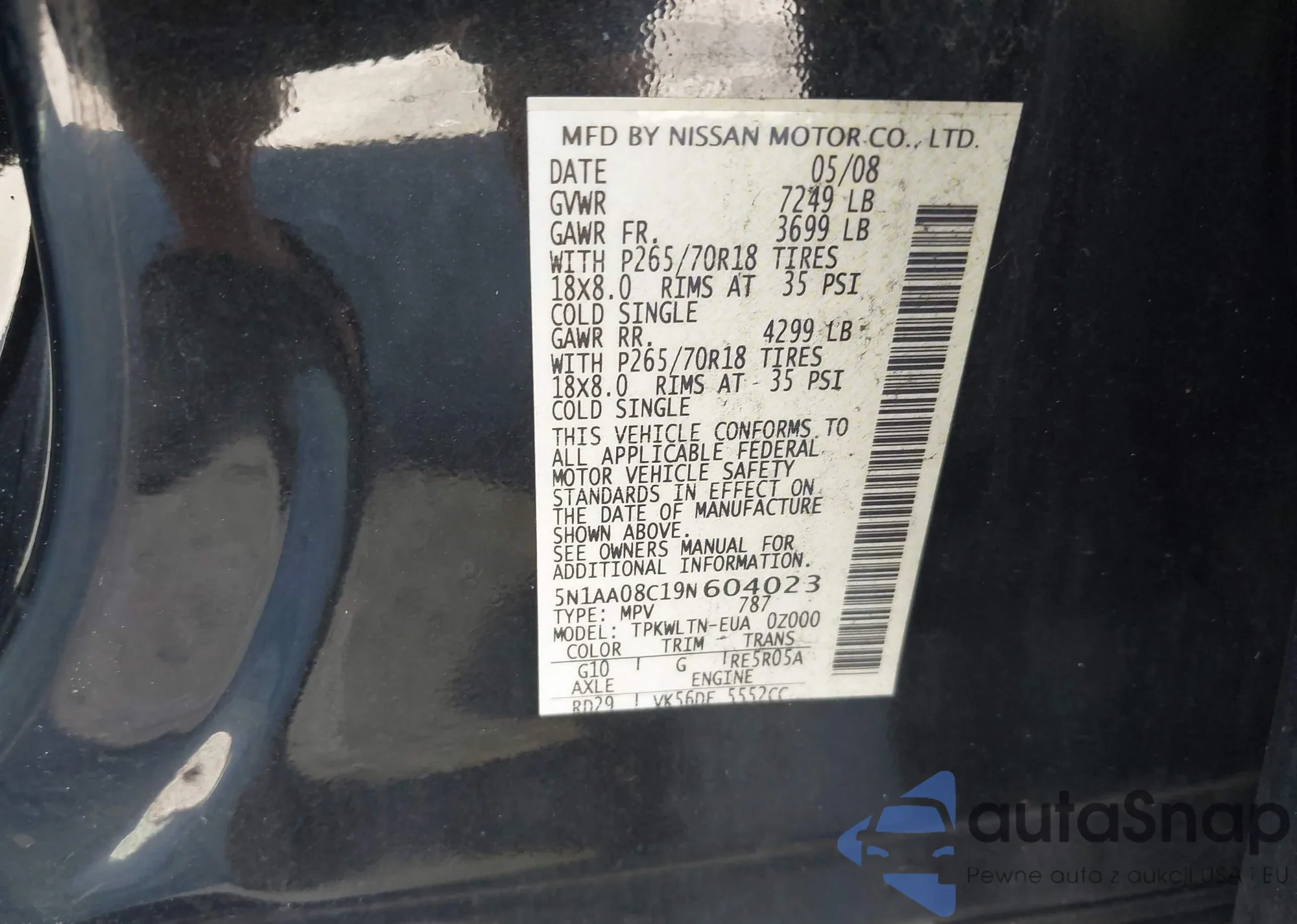 VIN: 5N1AA08C19N604023