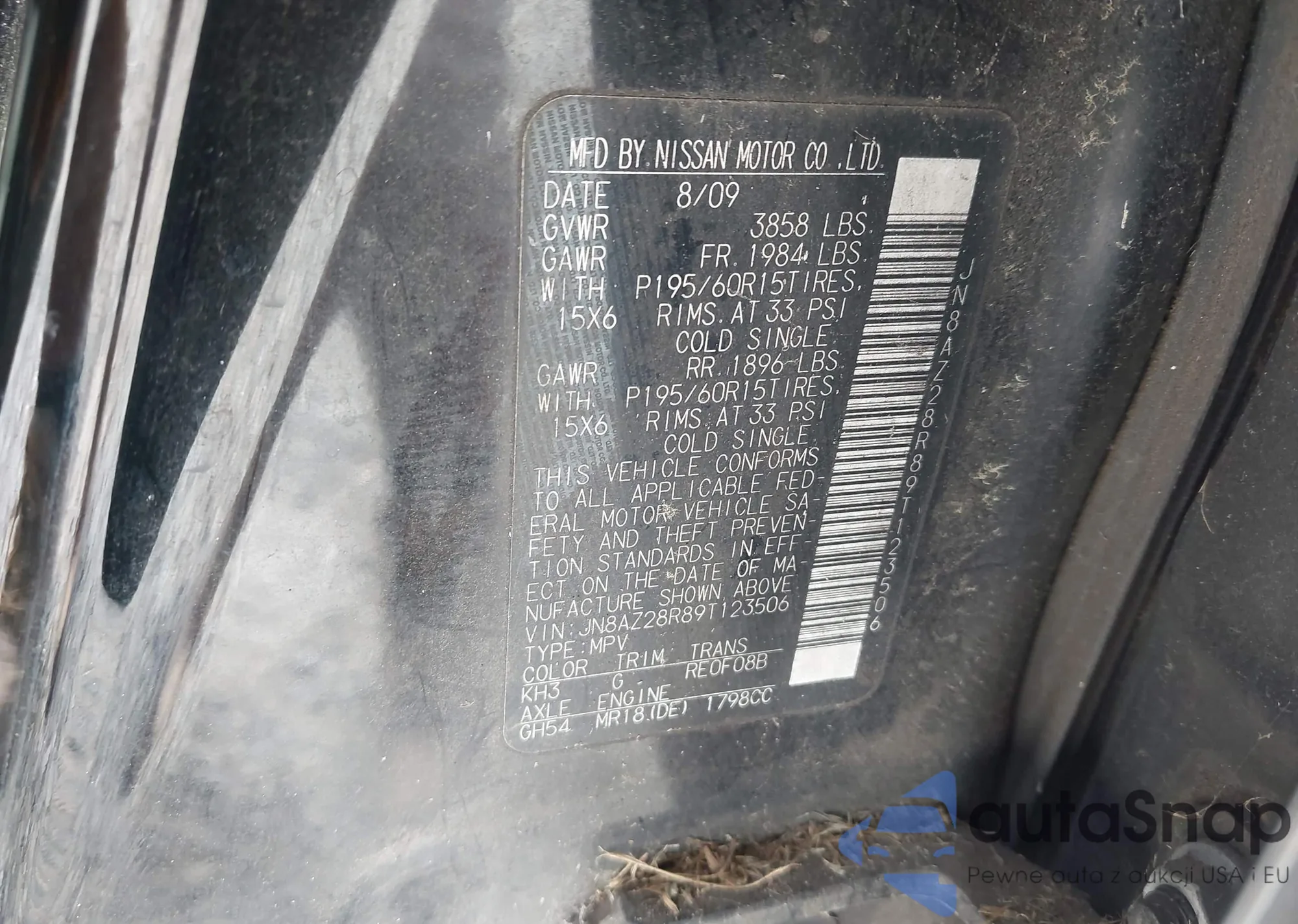 VIN: JN8AZ28R89T123506