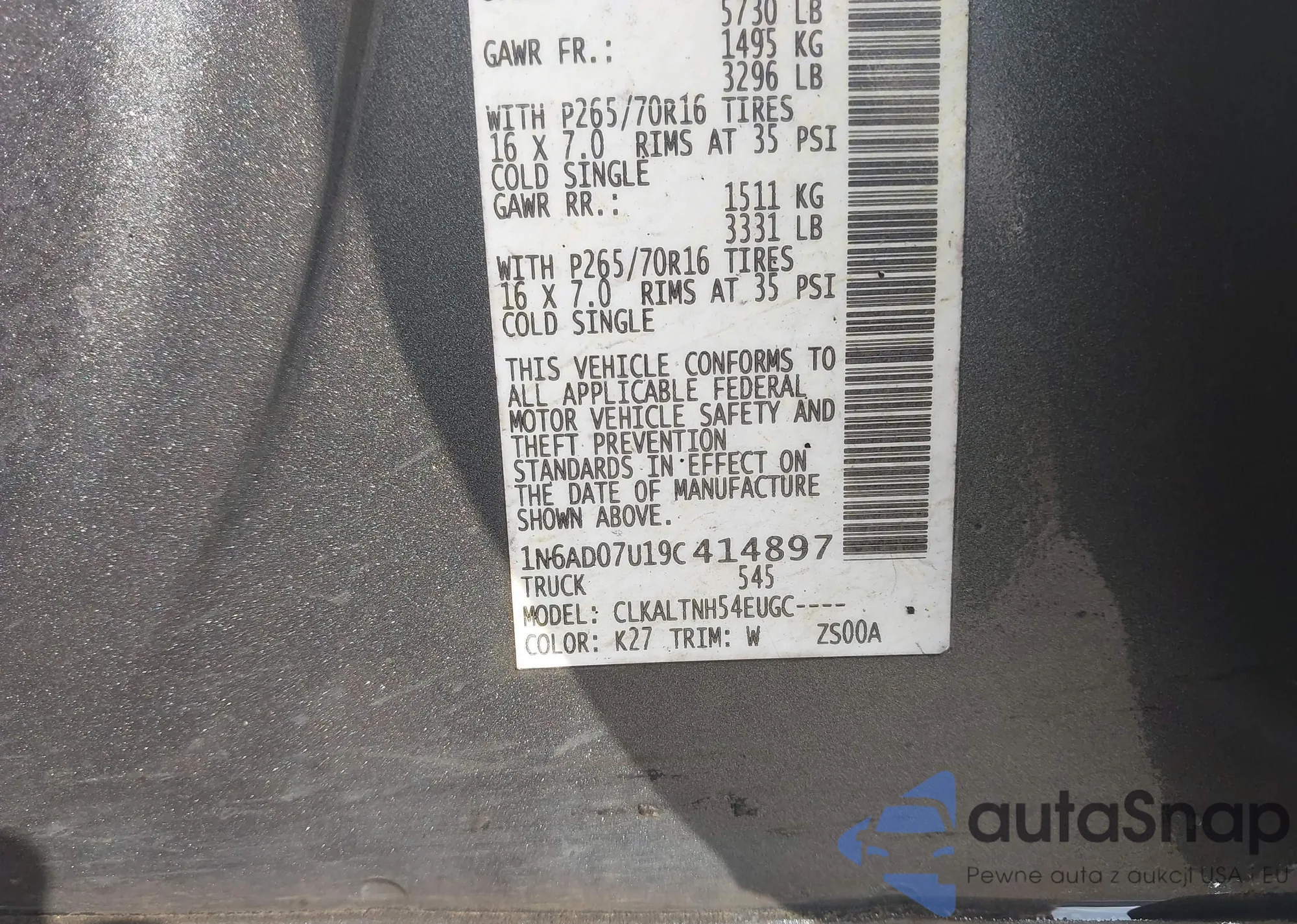 VIN: 1N6AD07U19C414897