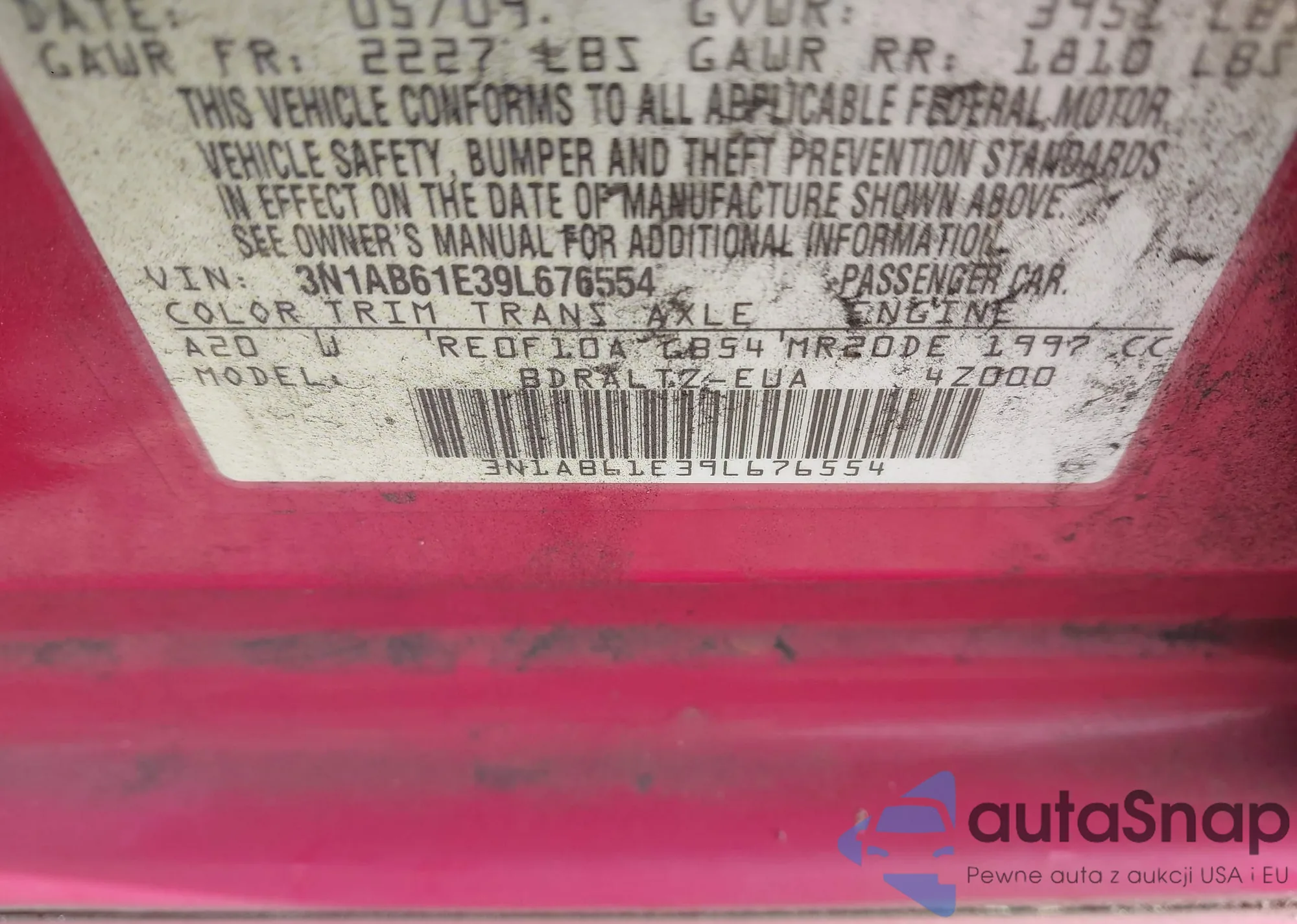 VIN: 3N1AB61E39L676554