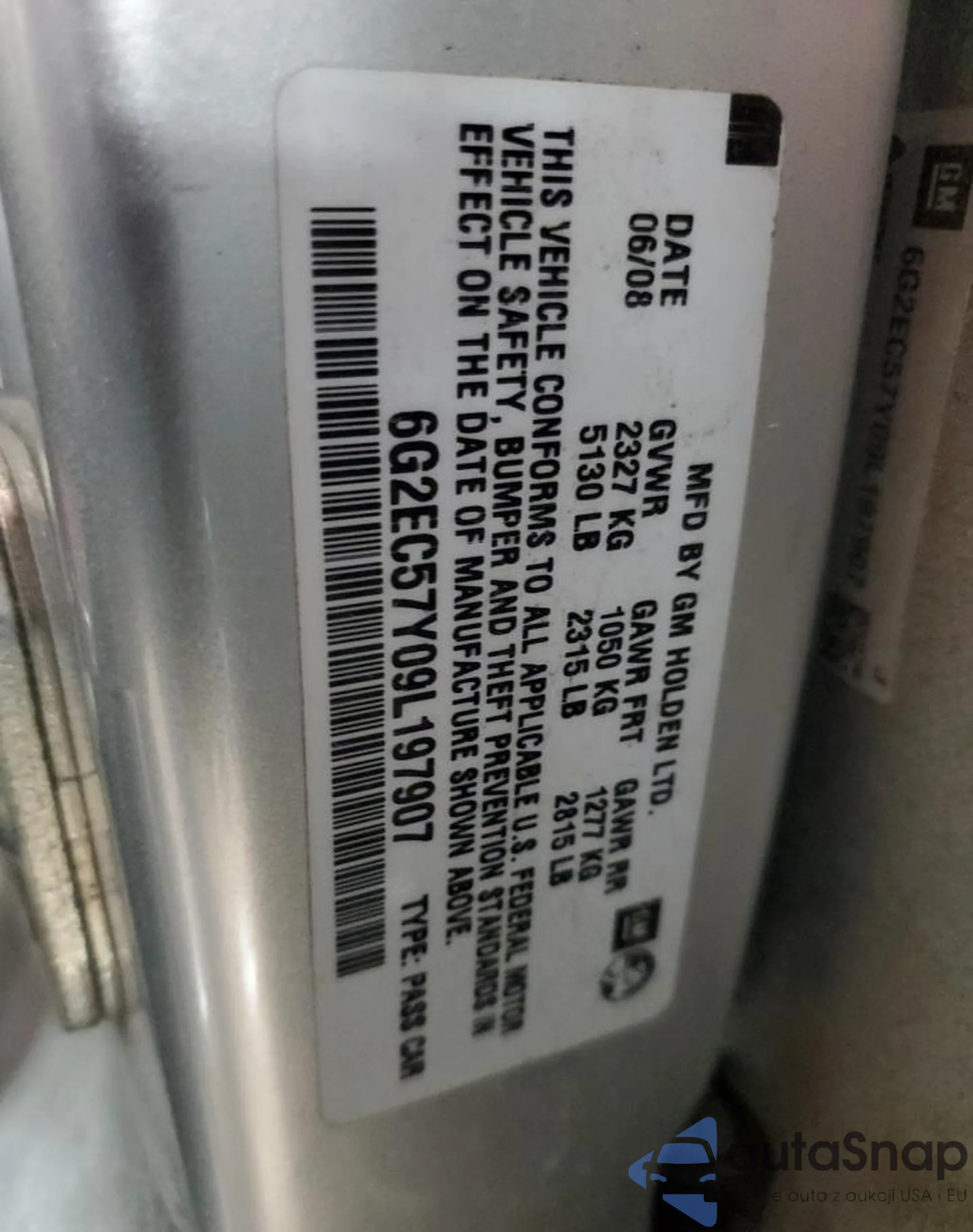 VIN: 6G2EC57Y09L197907
