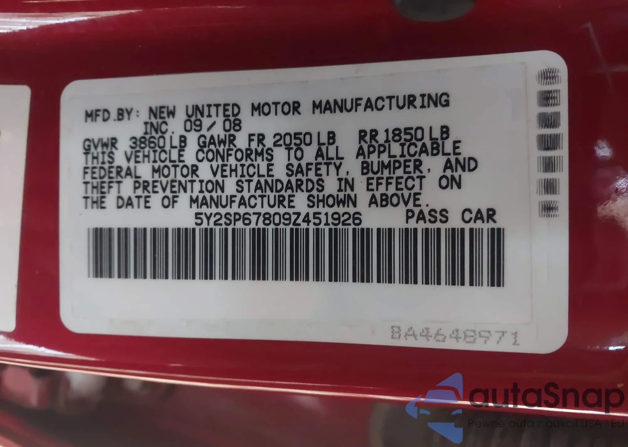 VIN: 5Y2SP67809Z451926