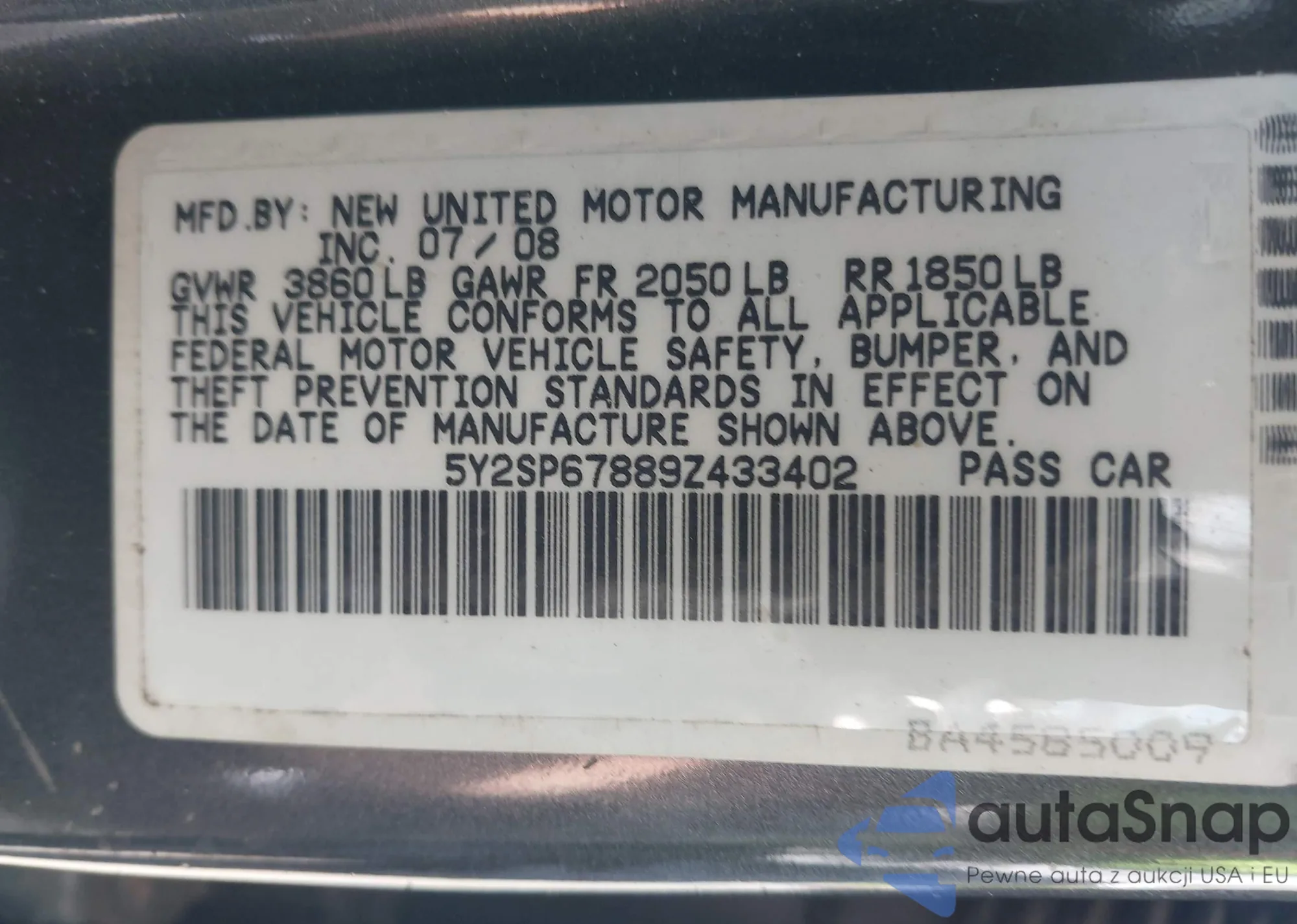 VIN: 5Y2SP67889Z433402