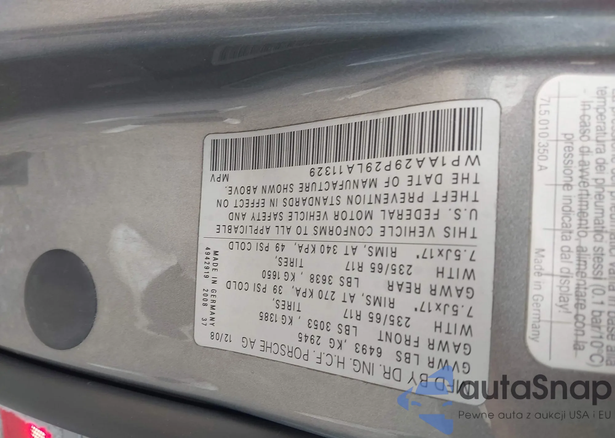 Автомобиль Porsche Cayenne 2009 (VIN WP1AA29P29LA11329) уже участвовал в торгах 1 раз(а) и/или продаётся непроверенным продавцом. Рекомендуем проверить отчет Carfax и подтвердить возможность регистрации перед покупкой.